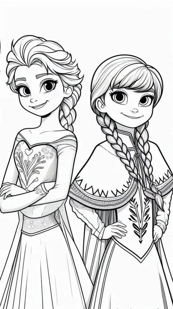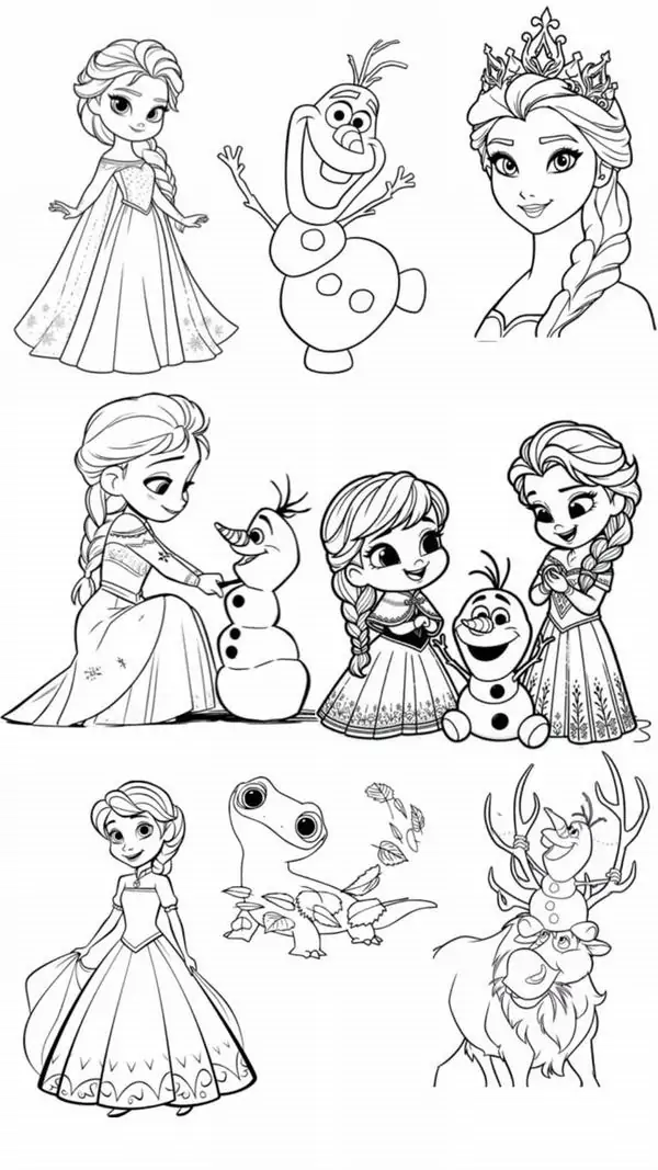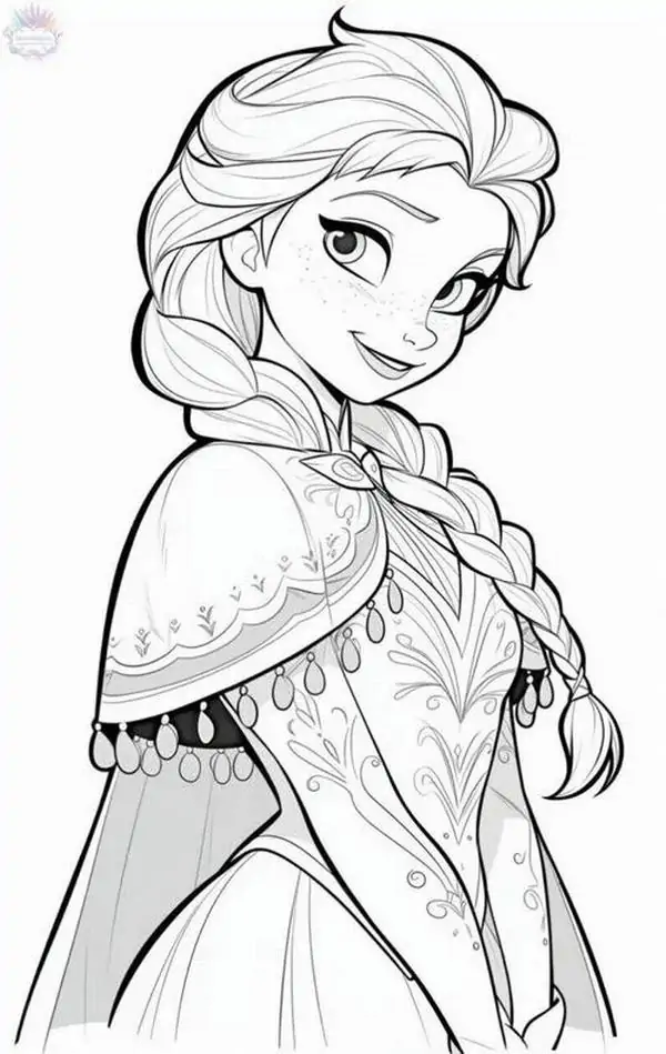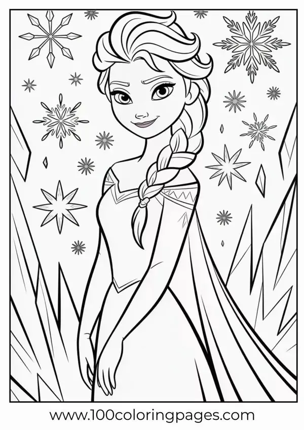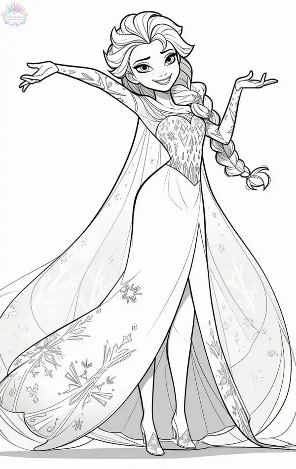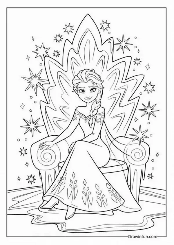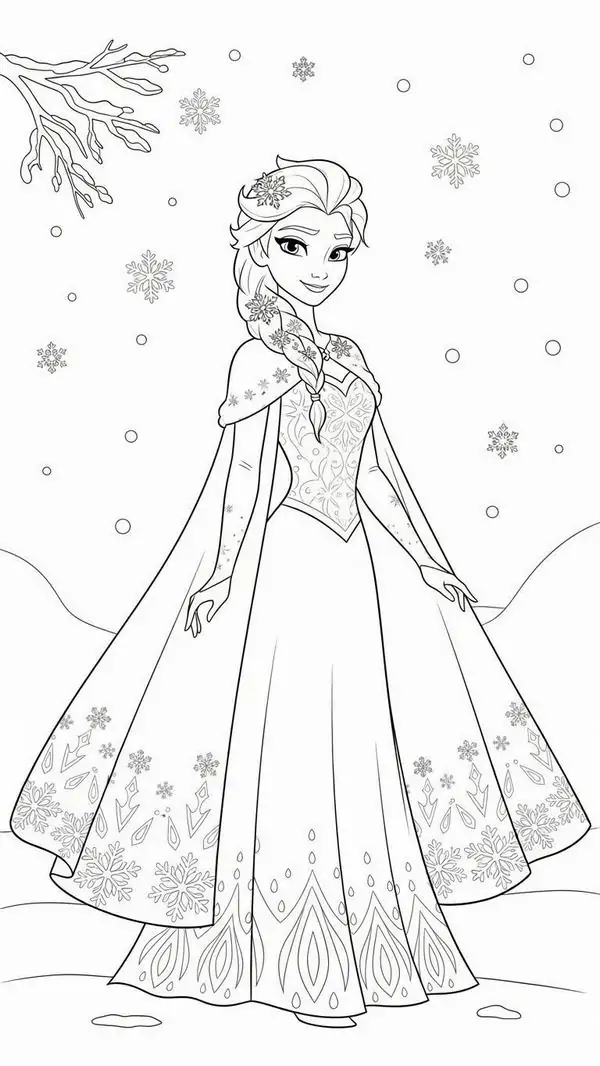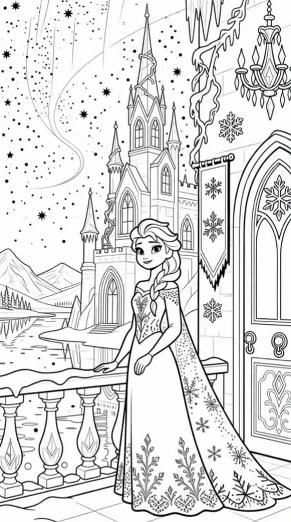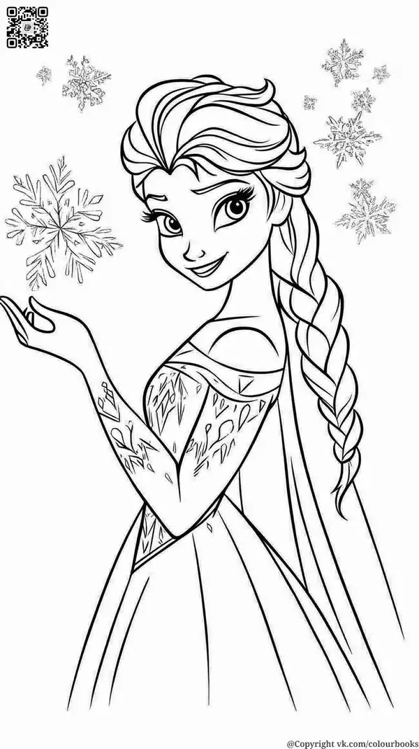 Tranh tô công chúa Elsa lấy cảm hứng từ nhân vật nổi tiếng trong phim Frozen của Disney, nữ hoàng Arendelle sở hữu khả năng điều khiển băng tuyết bẩm sinh. Ở các bản vẽ nét mảnh, Elsa thường xuất hiện với bím tóc vàng bạch kim lệch vai, đôi mắt xanh dương trong veo, làn da trắng sáng và bộ váy xanh lấp lánh như kết tinh từ hàn băng. Chủ đề này còn gắn với lâu đài băng, phép thuật tuyết, bài hát Let It Go và hành trình trưởng thành đầy cảm xúc của Elsa bên cạnh Anna, Olaf, Kristoff cùng Sven.
