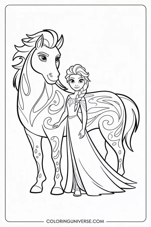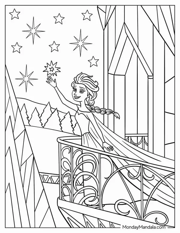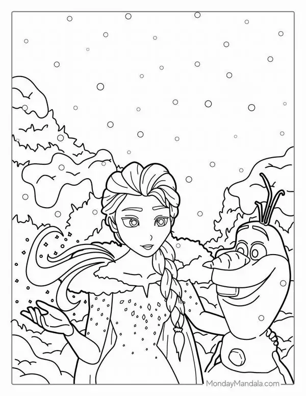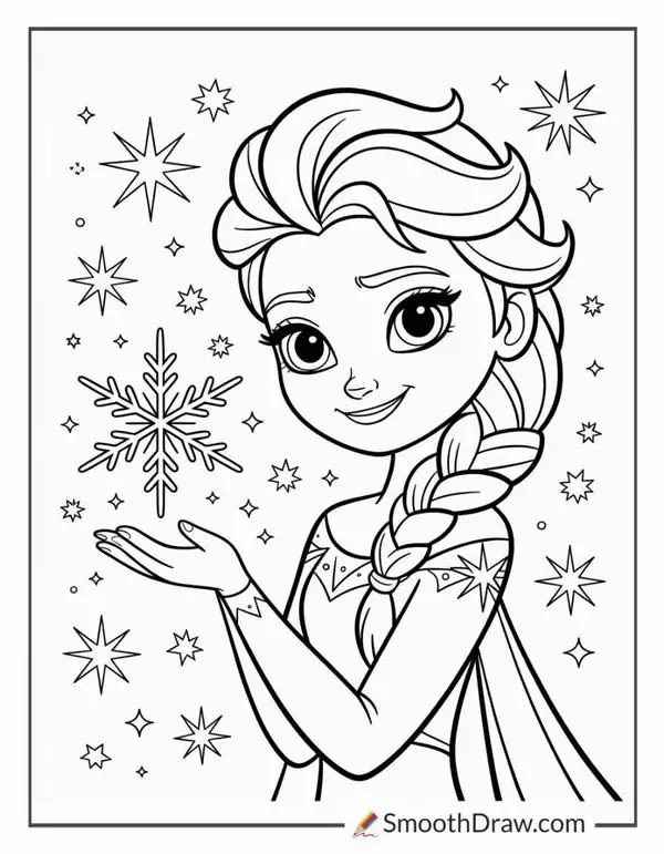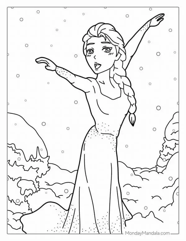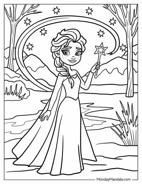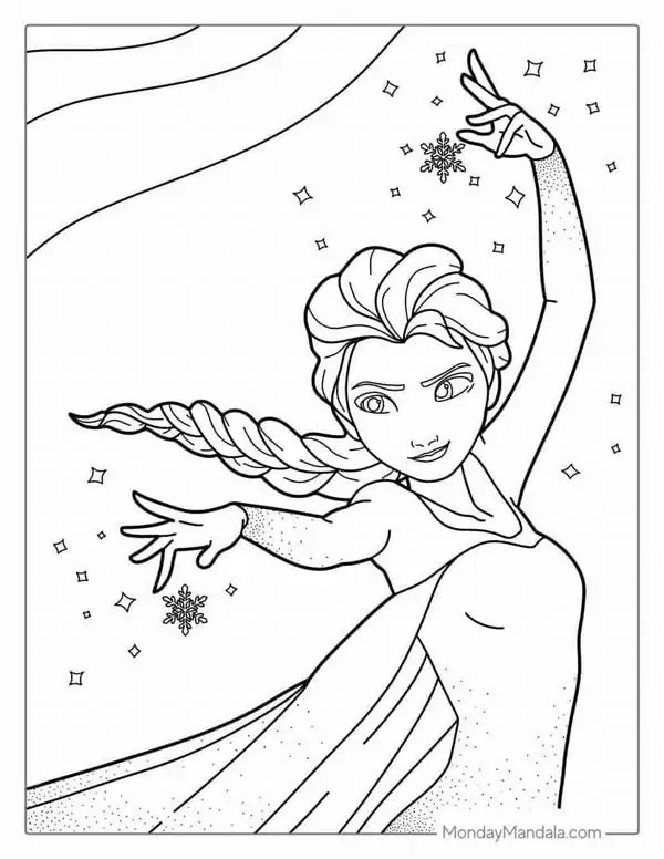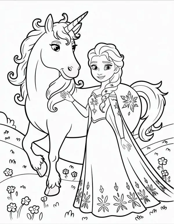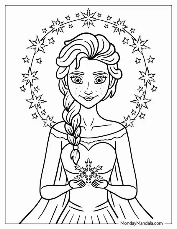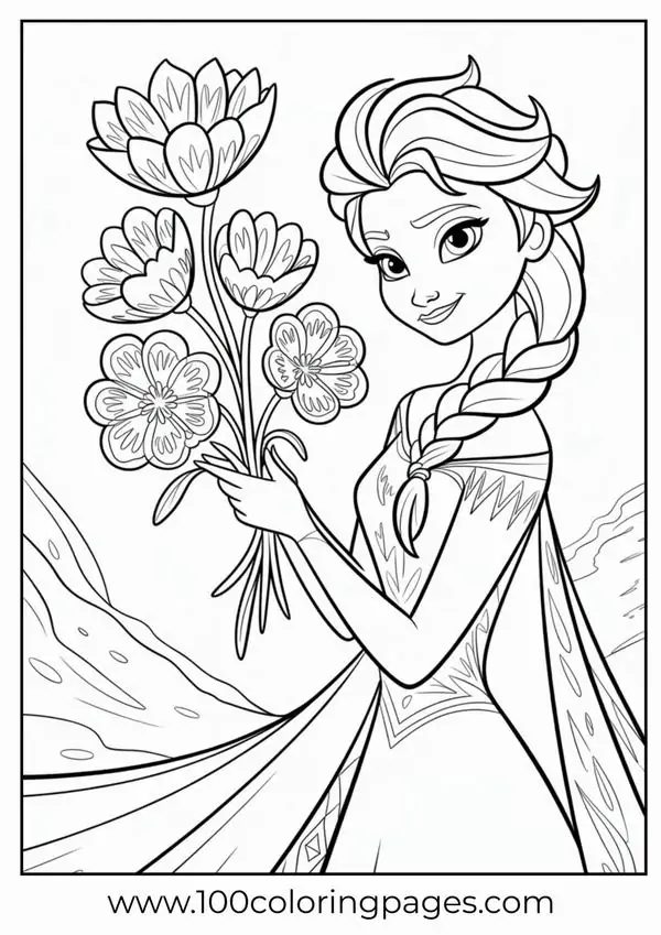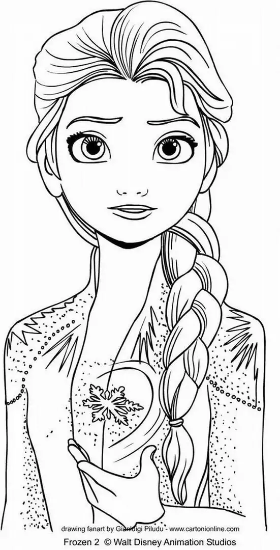 Tranh tô công chúa Elsa lấy cảm hứng từ nhân vật nổi tiếng trong phim Frozen của Disney, nữ hoàng Arendelle sở hữu khả năng điều khiển băng tuyết bẩm sinh. Ở các bản vẽ nét mảnh, Elsa thường xuất hiện với bím tóc vàng bạch kim lệch vai, đôi mắt xanh dương trong veo, làn da trắng sáng và bộ váy xanh lấp lánh như kết tinh từ hàn băng. Chủ đề này còn gắn với lâu đài băng, phép thuật tuyết, bài hát Let It Go và hành trình trưởng thành đầy cảm xúc của Elsa bên cạnh Anna, Olaf, Kristoff cùng Sven.
