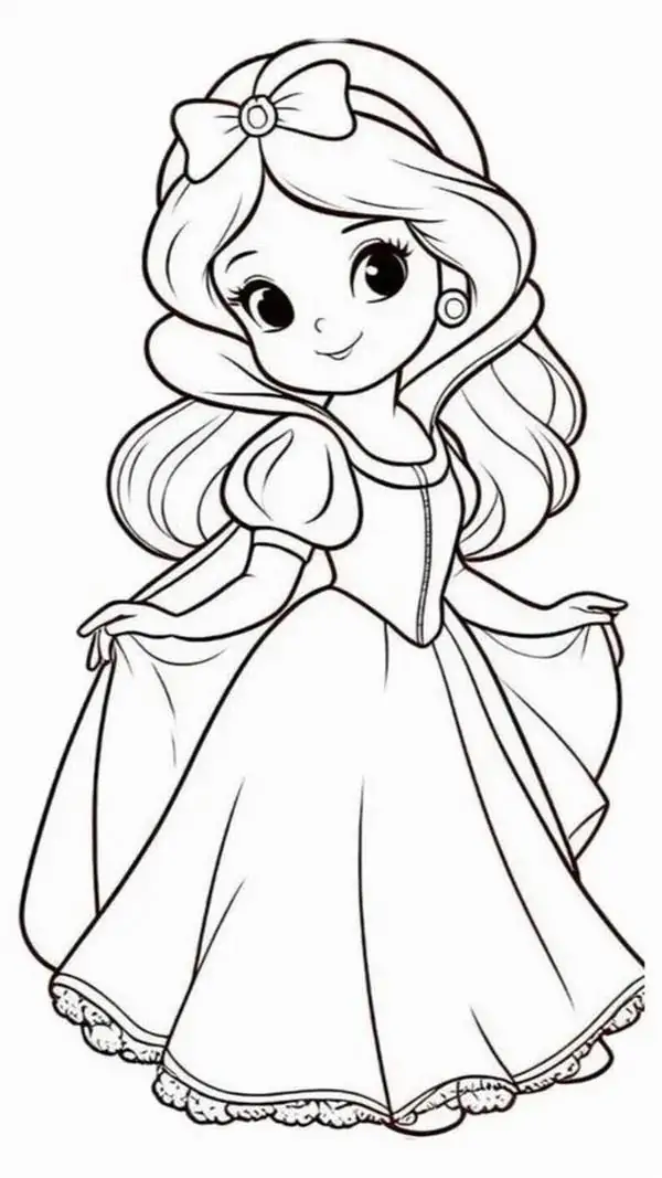 Khi tô tranh, mẹ có thể hướng bé bắt đầu từ những phần lớn trước như váy, tóc, nền trời rồi mới chuyển sang chi tiết nhỏ như bông tuyết, vương miện hay ánh sáng quanh bàn tay. Cách này giúp bé đỡ rối mắt và kiểm soát màu tốt hơn.