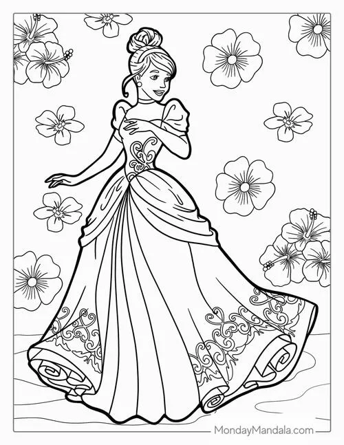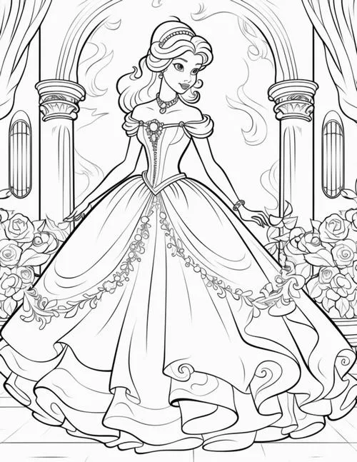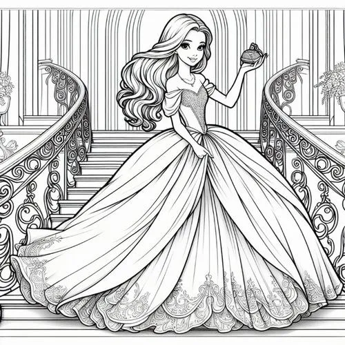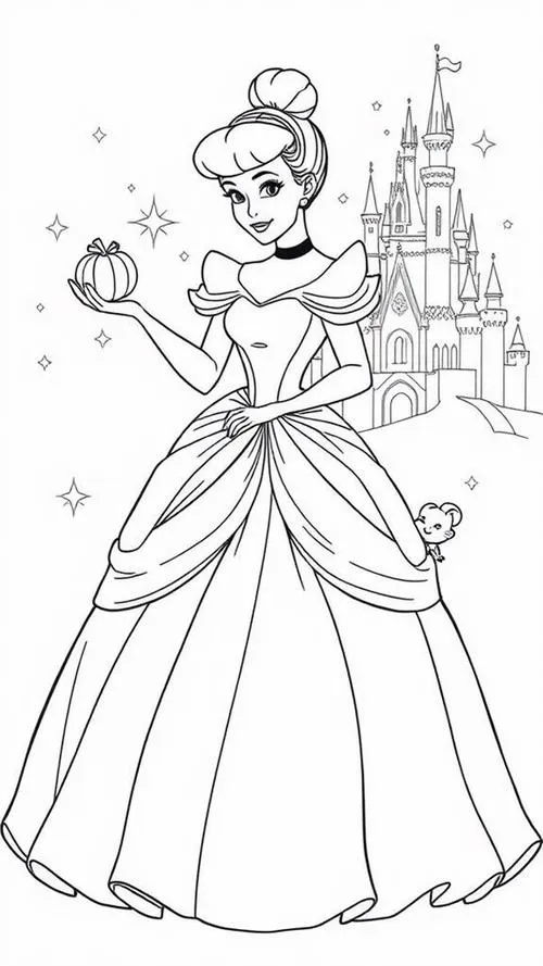 Tranh tập tô màu công chúa Lọ Lem lấy cảm hứng từ truyện cổ tích nổi tiếng gắn với Charles Perrault, anh em nhà Grimm và cả hình tượng Cinderella quen thuộc qua Walt Disney. Nhân vật nổi bật với gương mặt hiền hậu, ánh mắt sáng, mái tóc búi cao thanh lịch hoặc xõa mềm dịu dàng.