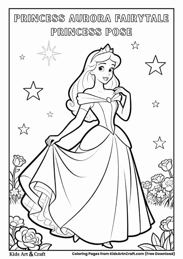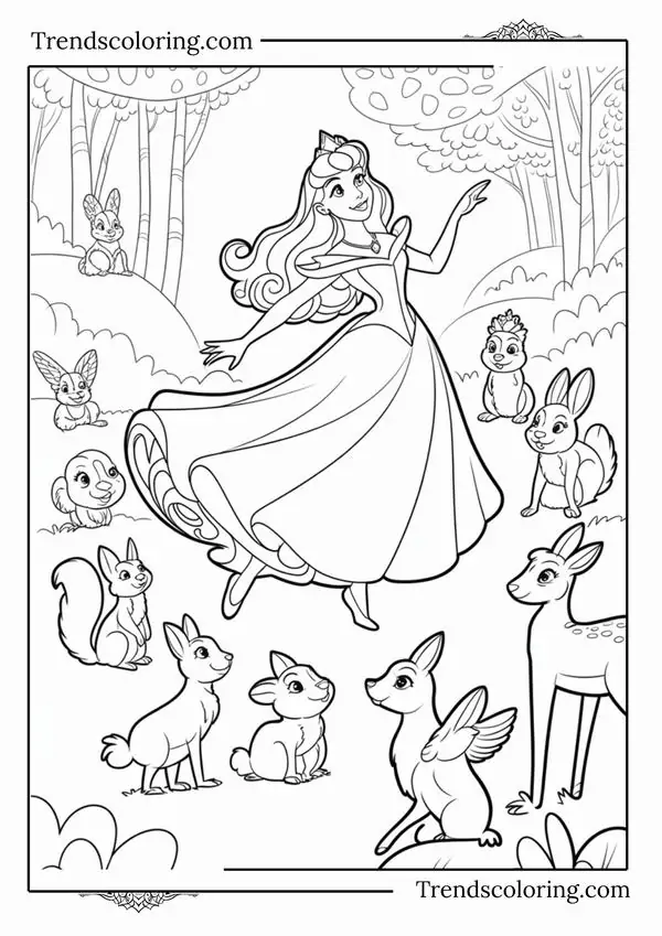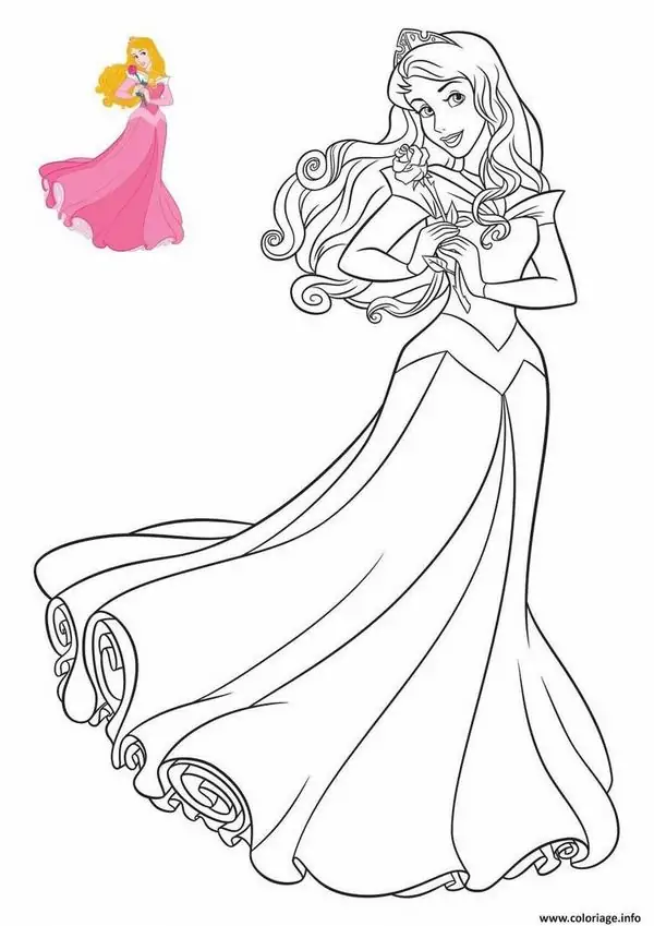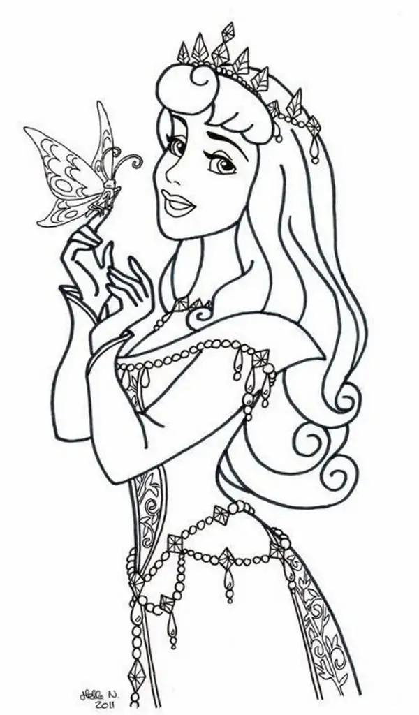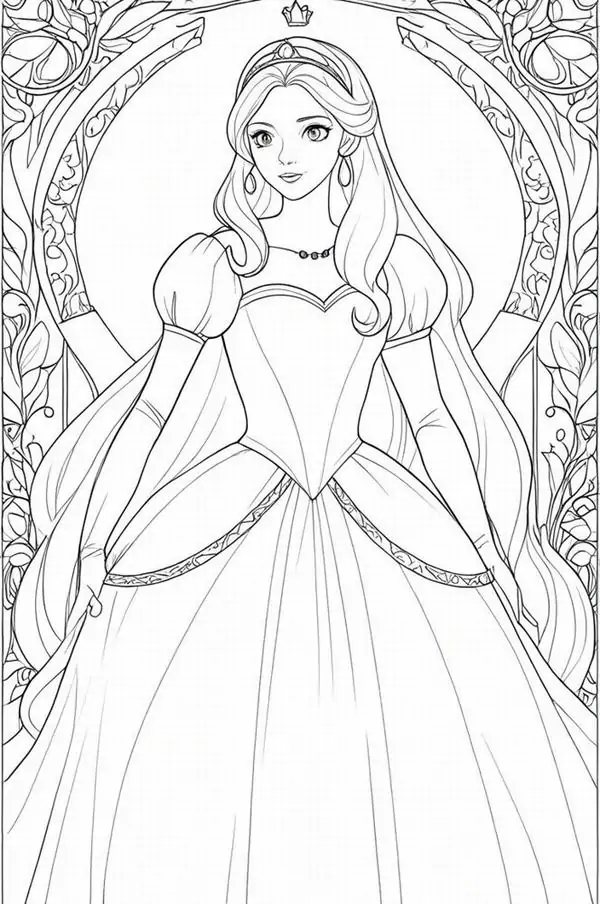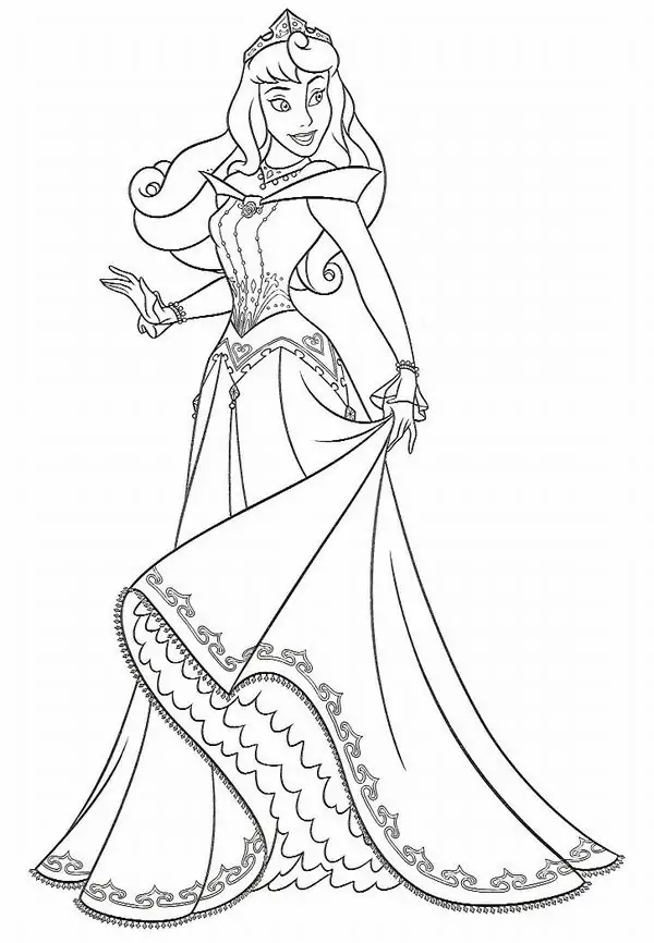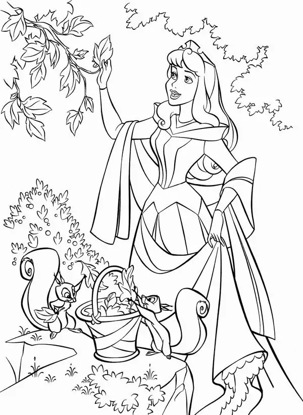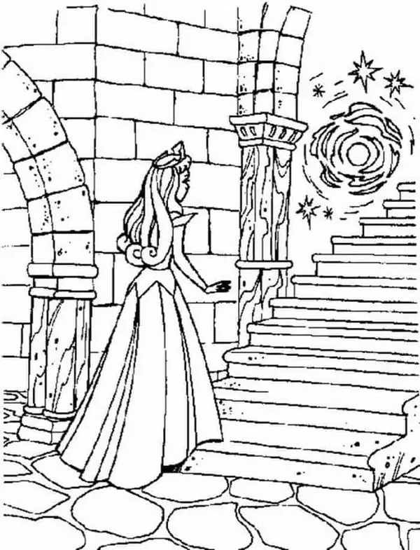 Tranh tô màu người đẹp ngủ trong rừng lấy cảm hứng từ truyện cổ tích nổi tiếng gắn với nàng Aurora, còn được biết đến với tên Briar Rose hay công chúa Hồng Hoa. Hình tượng này trở nên quen thuộc qua phiên bản hoạt hình Disney, nổi bật với vẻ đẹp thanh khiết, mái tóc vàng óng, chiếc váy dạ hội bồng bềnh và chiếc vương miện nhỏ tinh xảo.