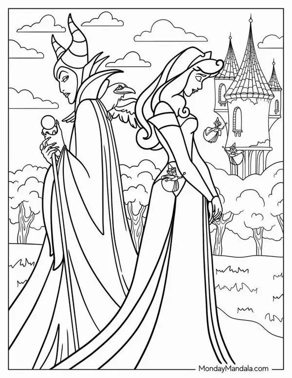 Nhìn tranh tô màu công chúa ngủ trong rừng, cảm giác giống như mở cánh cửa nhỏ bước vào chiếc hộp nhạc cổ tích. Ở đó có Aurora mềm mại như nắng sớm, có lâu đài cao vút như trong mơ, có rừng xanh thì thầm và phép màu lấp lánh quanh ba bà tiên. Arte y Cultura TV sưu tầm bộ tranh này để bé vừa tô vừa tưởng tượng, càng ngắm càng thấy đáng yêu cực.
