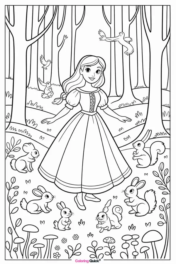 - 95 Tranh Tô Màu Công Chúa Bạch Tuyết xinh đẹp với tóc đen nơ đỏ giữa khu rừng cổ tích