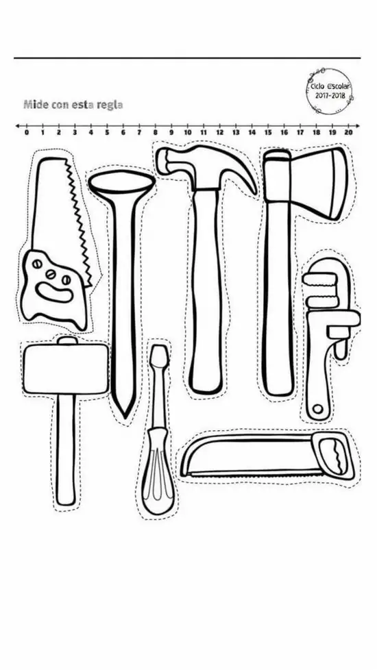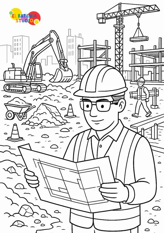 Bức tranh thì đen trắng thôi, nhưng thế giới bên trong lại rất sống động. Có búa, xẻng, kìm, thước dây, cả máy trộn bê tông và giàn giáo nữa. Arte y Cultura TV gom lại thành một bộ tranh gần gũi để bé vừa tô vừa tưởng tượng cảnh công trường nhộn nhịp. Nét vẽ mạnh, hình khối rõ. Bé tô ít bị rối mắt, mà còn dễ nhớ tên từng món đồ.