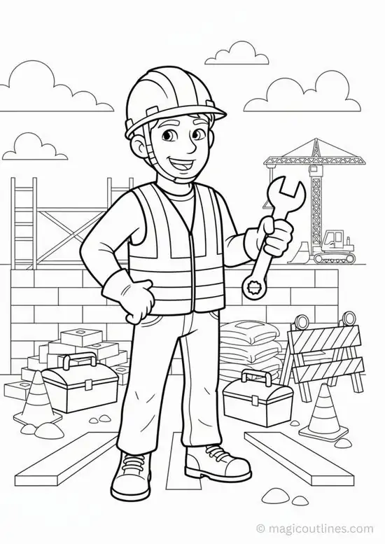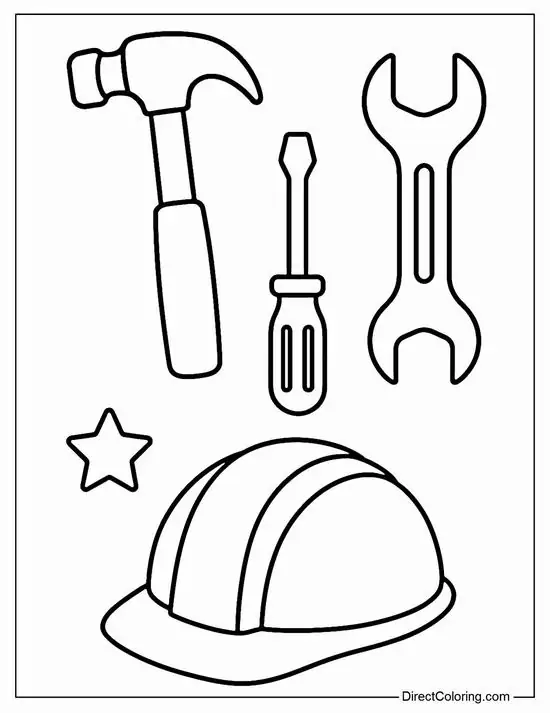 Tranh tô màu dụng cụ nghề xây dựng bắt nguồn từ nhóm tranh giáo dục nghề nghiệp, nơi bé được làm quen với các vật dụng thật ngoài đời thật. Đây còn mở ra cơ hội để con học tên đồ vật, hiểu công dụng, quan sát hình khối cơ khí, tập phối màu và rèn sự kiên nhẫn qua từng chi tiết như bánh răng, dây xích, gạch xếp tường hay mũ bảo hộ trên công trường.