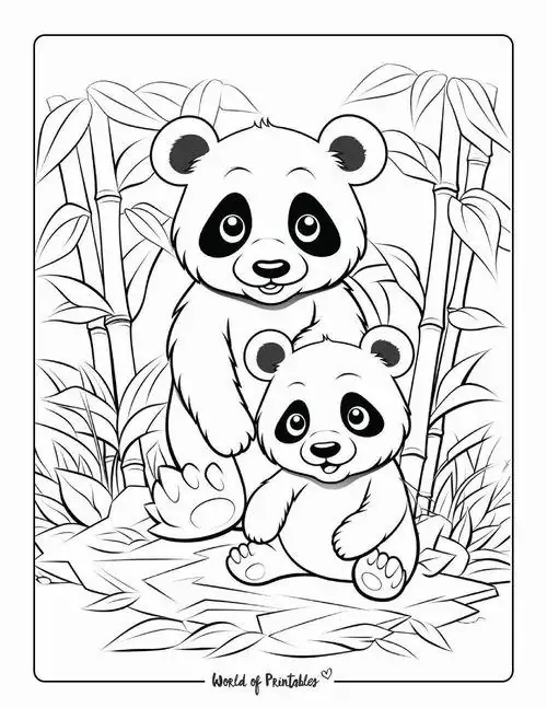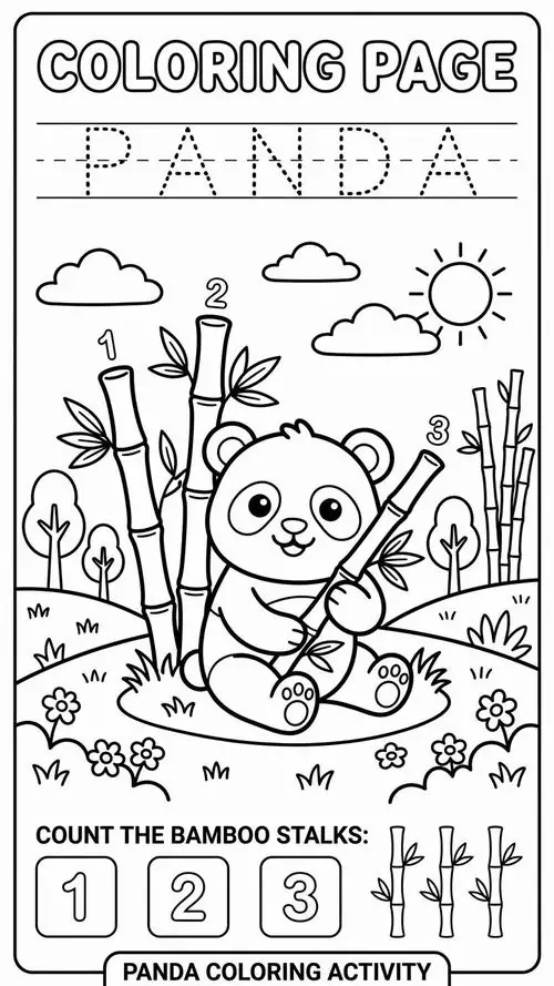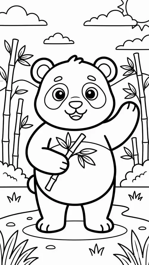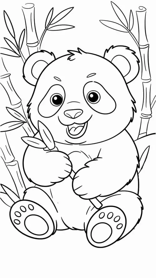 Trong tranh tô màu, gấu trúc thường xuất hiện bên cây tre, măng non, rừng trúc hay gấu mẹ chăm gấu con. Chủ đề này đặc biệt hợp với trẻ nhỏ vì ít mảng màu chính, đường nét dễ nhìn, nhưng vẫn đủ không gian để bé sáng tạo phần nền và biểu cảm.