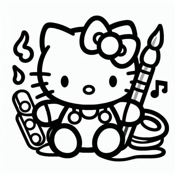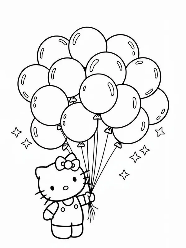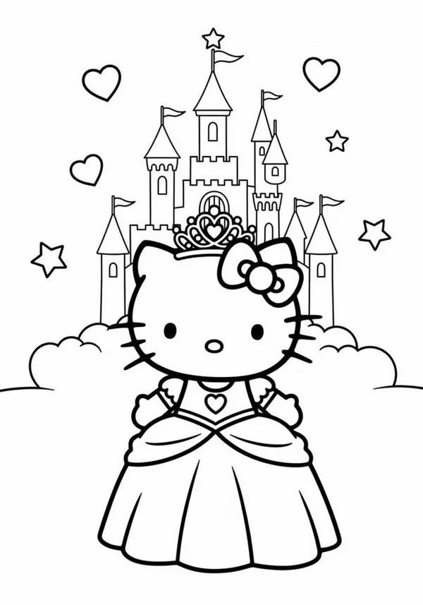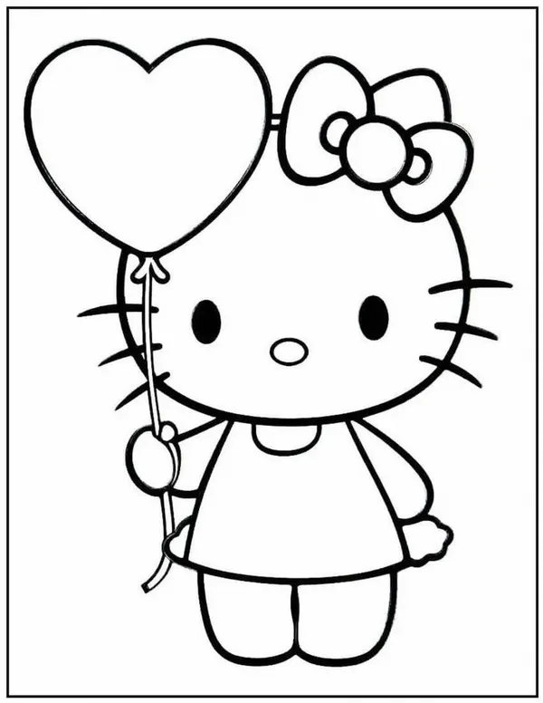 Khi bước vào tranh tô màu, Hello Kitty gây ấn tượng nhờ đầu tròn lớn, thân hình nhỏ, đôi mắt đen, sợi râu mèo thanh mảnh và thiết kế không miệng rất dễ nhận ra. Chủ đề này phù hợp với trẻ mầm non và tiểu học vì nét vẽ rõ, hình đơn giản, dễ tô và dễ phối màu.