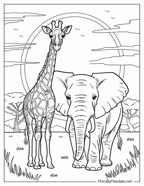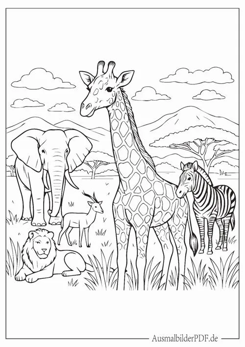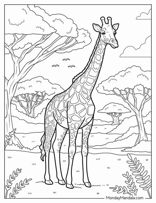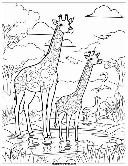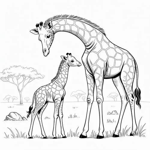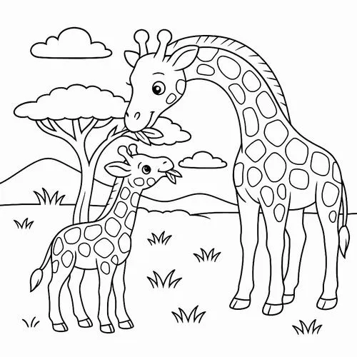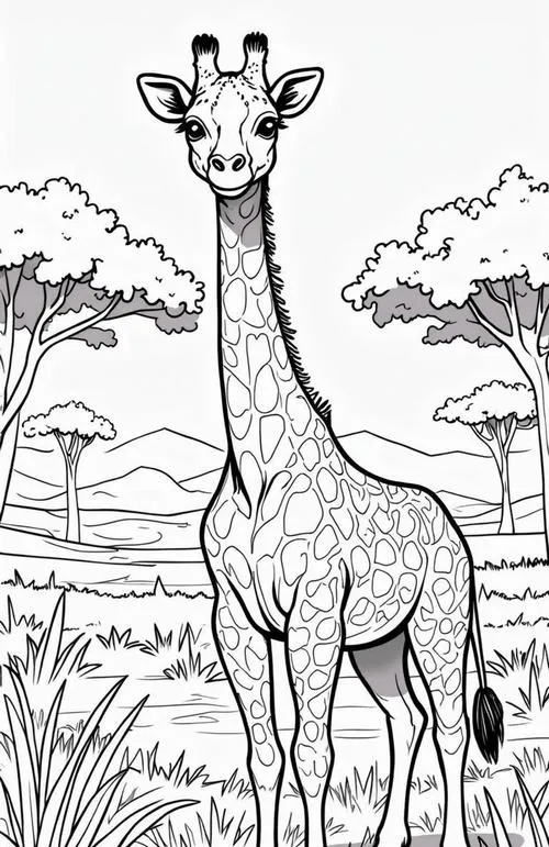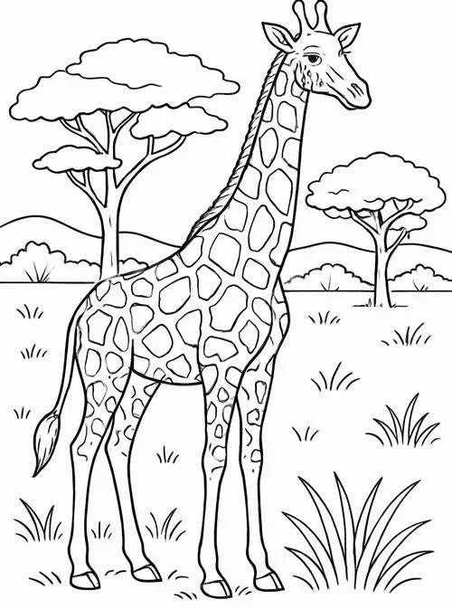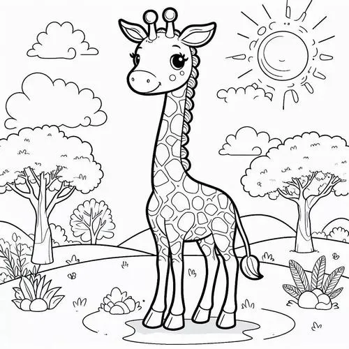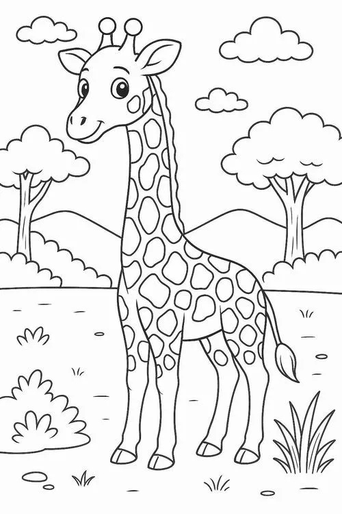 Hươu cao cổ là loài động vật có vú thuộc bộ móng guốc chẵn, sống chủ yếu ở đồng cỏ Savannah và rừng thưa châu Phi, trong tranh tô màu, hươu cao cổ luôn gây chú ý vì vóc dáng thanh thoát, mắt to hiền, lưỡi màu xanh đen và những mảng đốm phù hợp với nhiều độ tuổi, nhất là các bé từ 3 đến 9 tuổi.