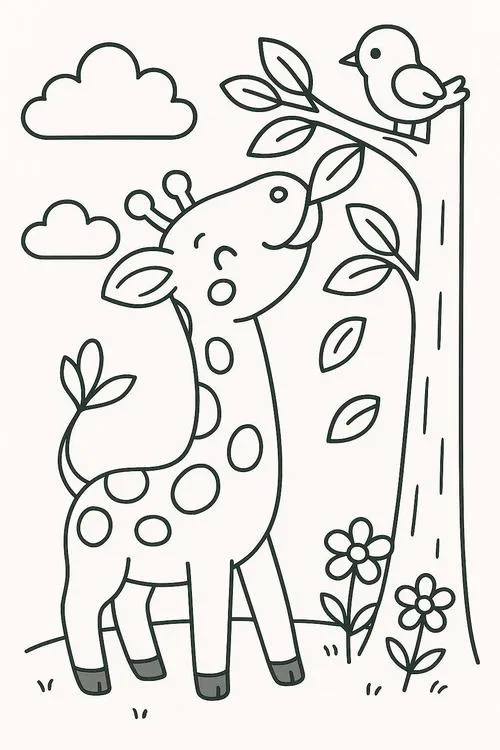 Tranh tô màu hươu cao cổ là một cầu nối rất đẹp giữa vui chơi và giáo dục cảm xúc, vì qua hình ảnh con vật hiền lành sống theo đàn, chăm sóc hươu con, ăn lá trên cao và thích nghi với thiên nhiên, bé có thể học về sự dịu dàng, kiên nhẫn, quan sát, yêu động vật và biết trân trọng môi trường sống xung quanh mình.