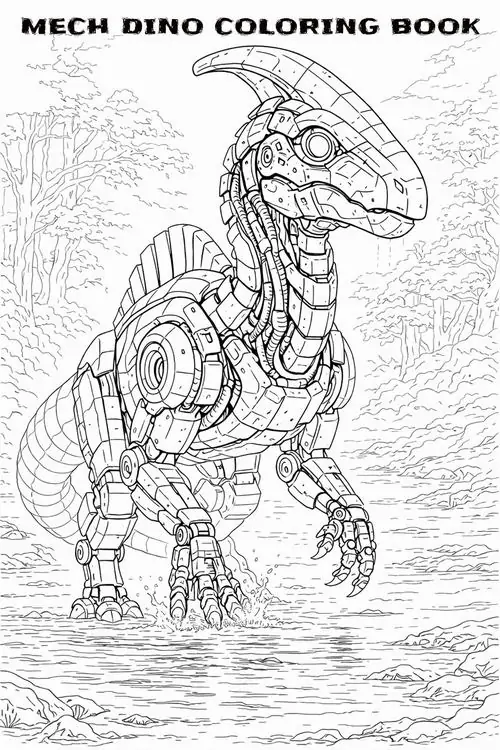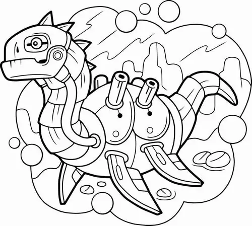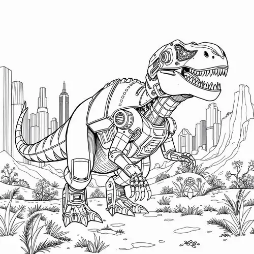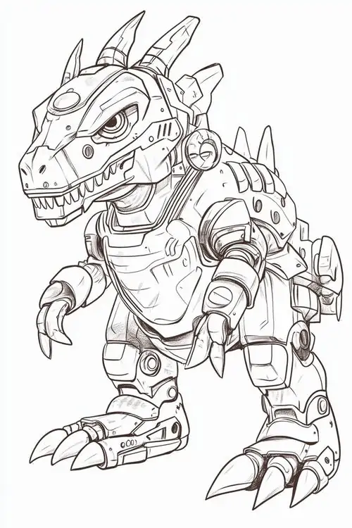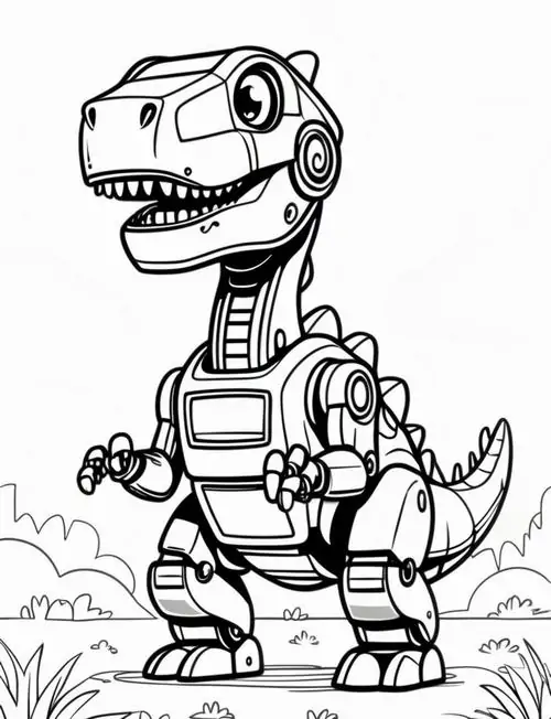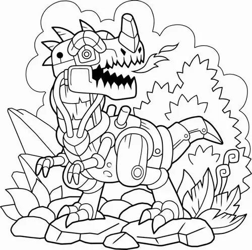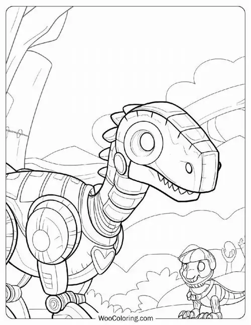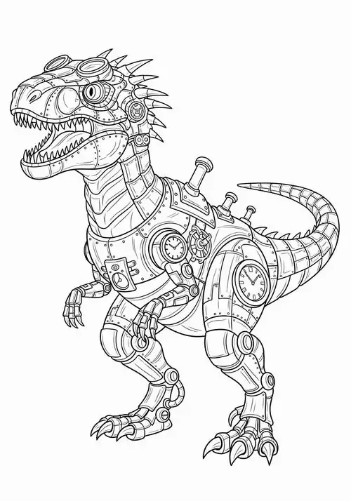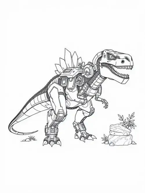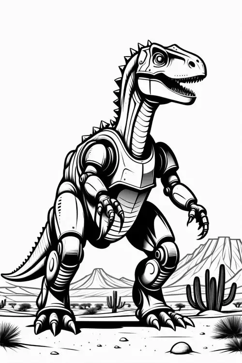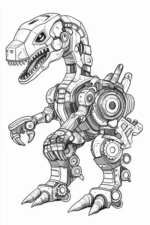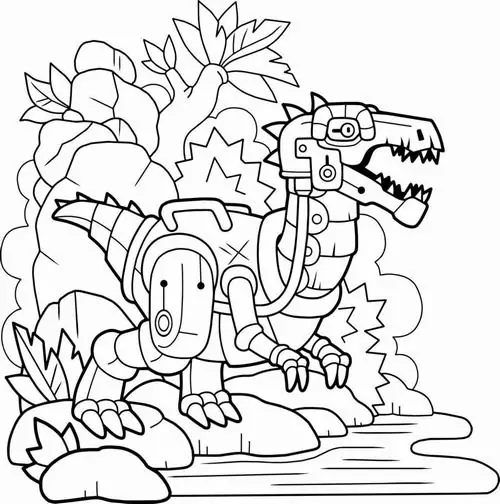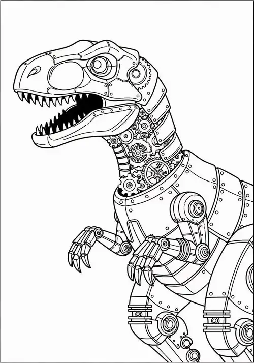 Tranh tô màu robot khủng long có nguồn gốc từ trí tưởng tượng hư cấu, lấy cảm hứng từ khủng long tiền sử, robot biến hình, Transformers Dinobots, Power Rangers Dinozords, Zoids, Mecha Godzilla và cả những cỗ máy trong Horizon Zero Dawn Machines.