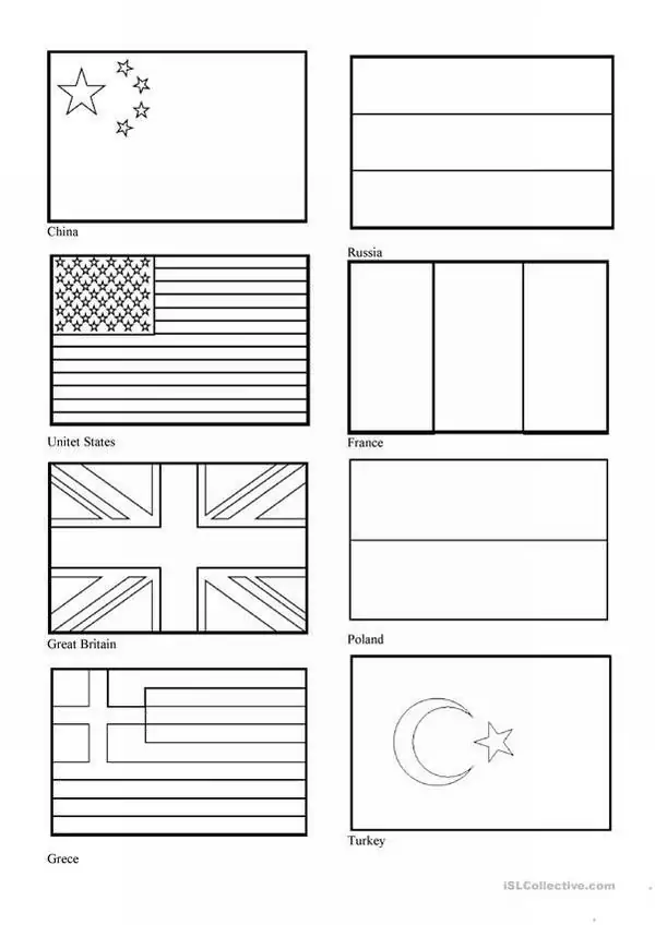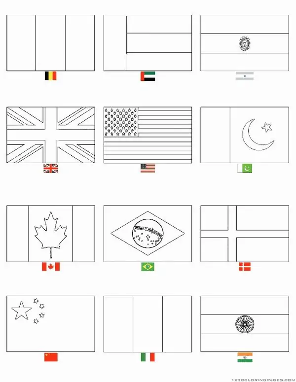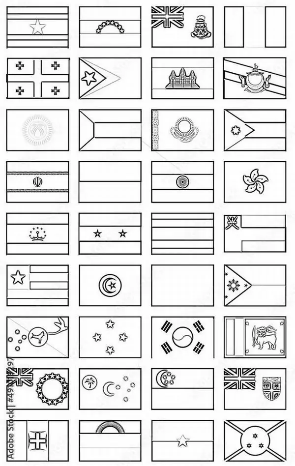Tranh tô màu lá cờ các nước là bản vẽ phác thảo đen trắng mô phỏng quốc kỳ của nhiều quốc gia trên thế giới, từ Việt Nam, Hoa Kỳ đến các nước ở Châu Á, Châu Âu, Châu Phi và Châu Đại Dương.