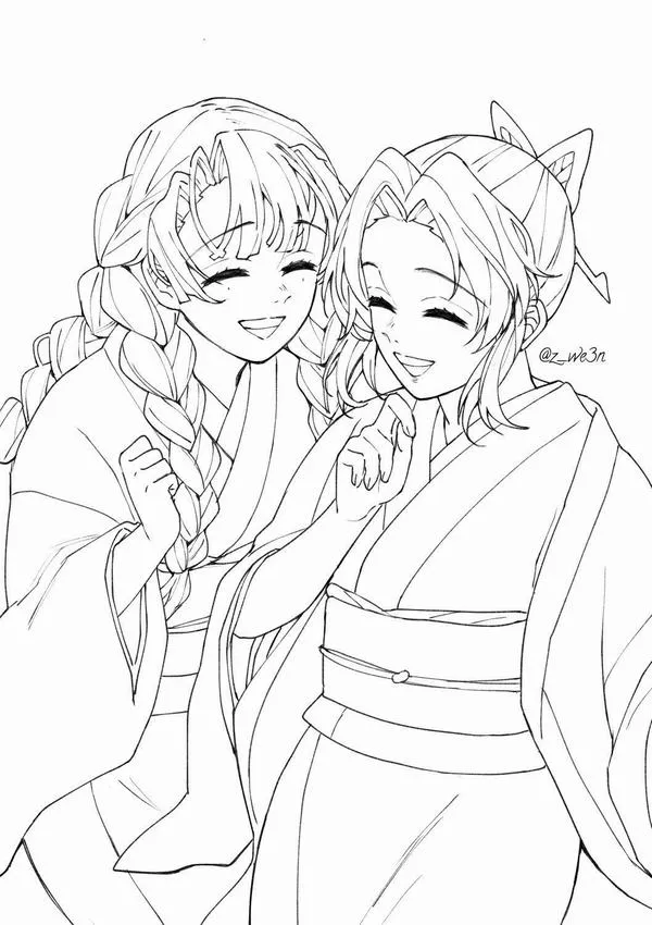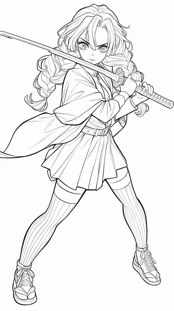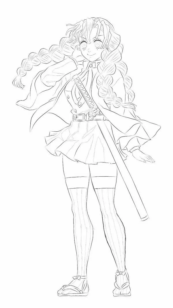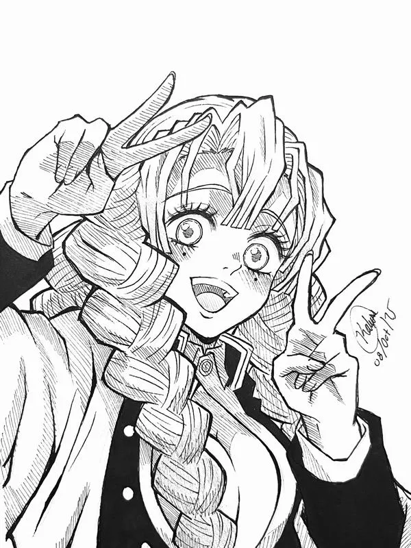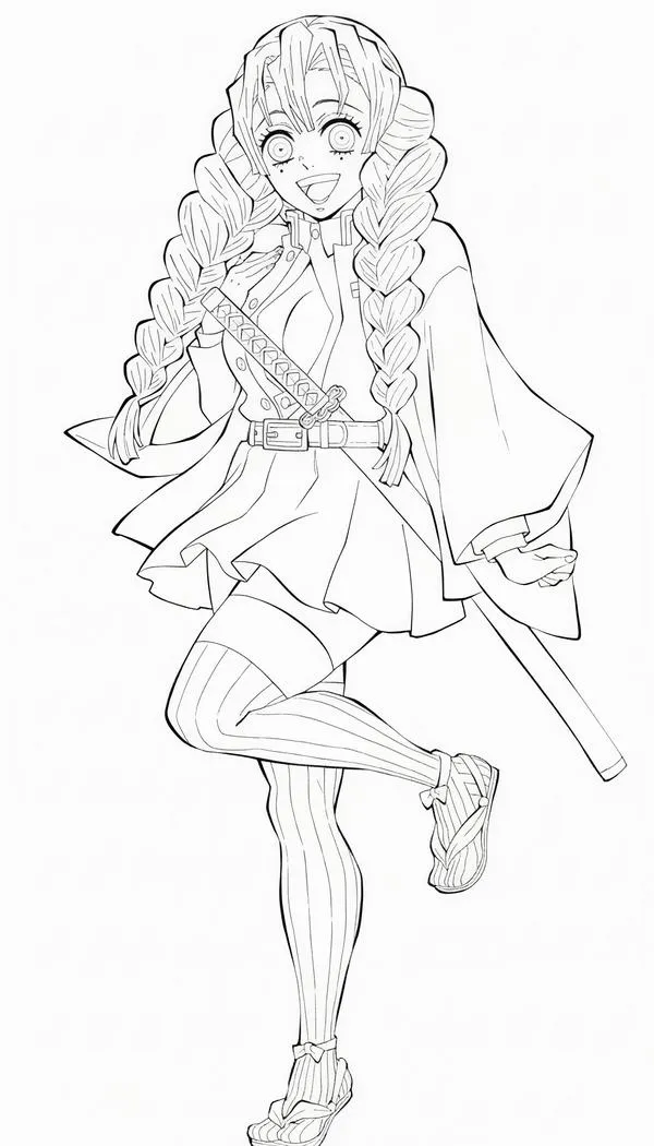 Nhìn tranh tô màu Mitsuri, nhiều bé sẽ liên tưởng ngay đến một đóa hoa rực rỡ đang múa cùng thanh kiếm Nichirin mềm như dải lụa. Arte y Cultura TV mang đến bộ hình vẽ Luyến Trụ với bím tóc hồng xanh, haori trắng và đôi tất xanh lá cực dễ nhận ra. Từng nét vẽ nhẹ nhàng mà cuốn hút, tô xong nhìn cứ cưng xỉu.