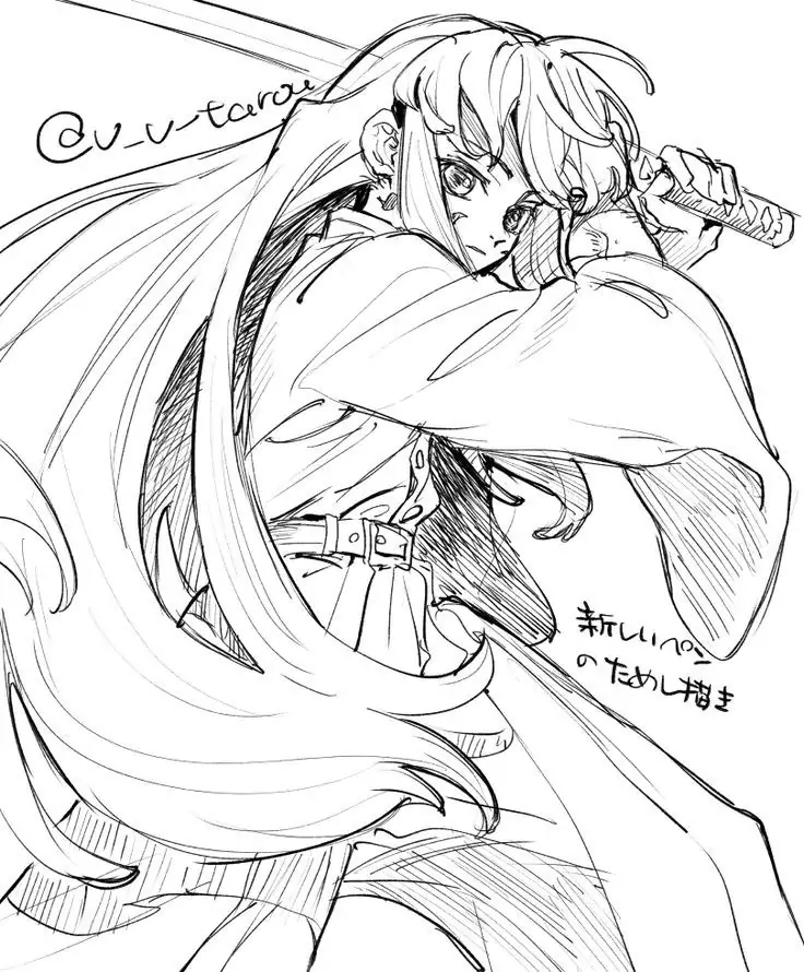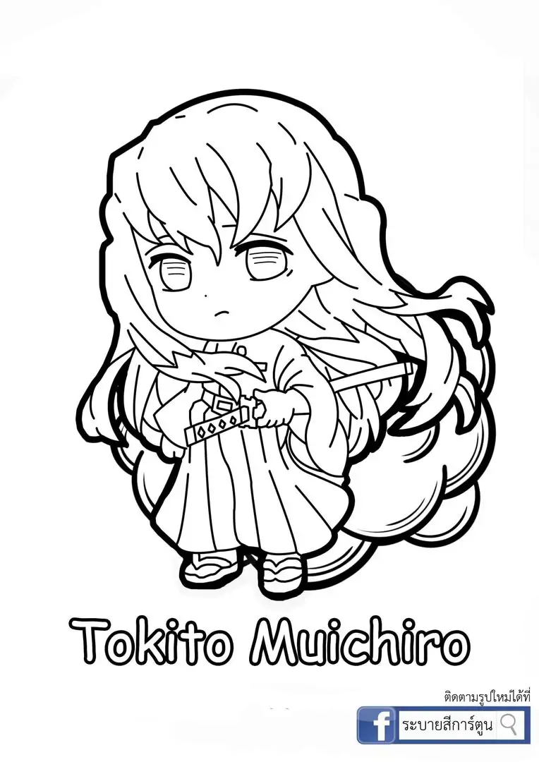 Chỉ cần thấy mái tóc dài đen dần chuyển xanh mint ở ngọn, nhiều fan đã nhận ra ngay Muichirou Tokito. Cậu có đôi mắt xanh nhạt, vẻ mặt bình thản và dáng người nhỏ nhắn nhưng cực mạnh. Arte y Cultura TV tổng hợp bộ tranh tô màu Muichirou chibi để bé thỏa sức phối màu cho Hà Trụ, từ đồng phục Sát Quỷ Đoàn đến Nhật Luân Kiếm trắng bạc.