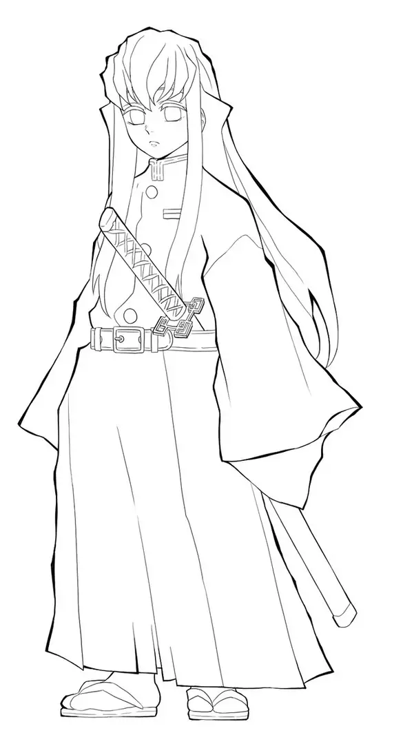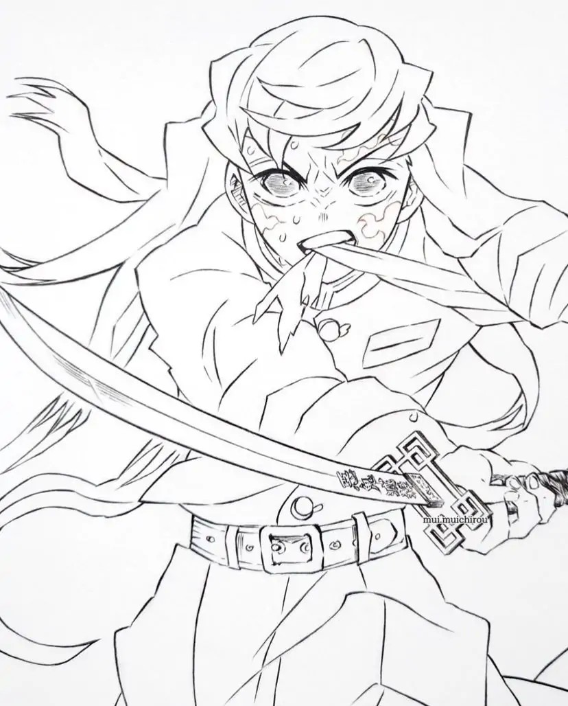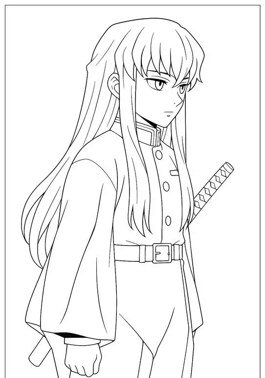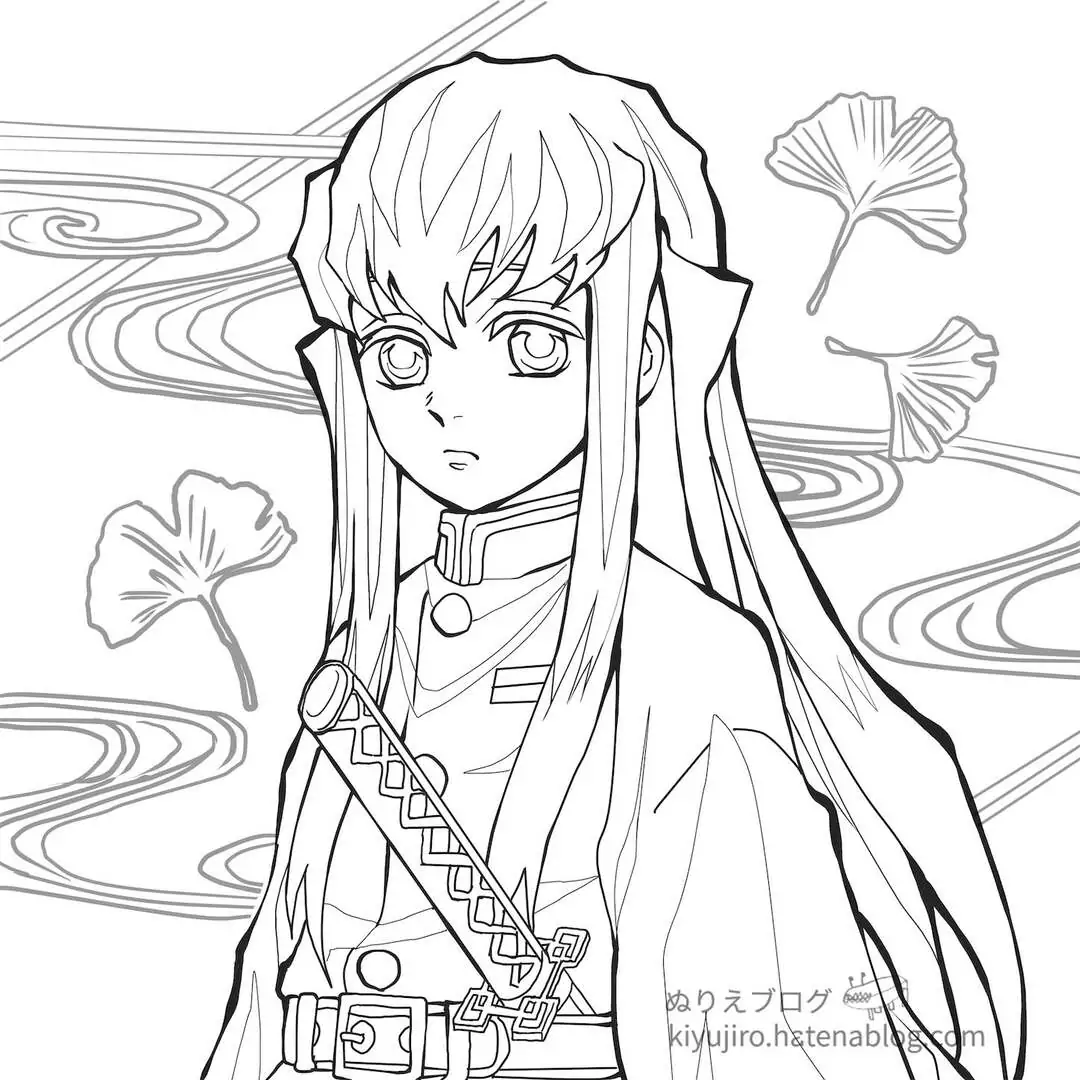 Muichirou Tokito là Hà Trụ của Sát Quỷ Đoàn trong Kimetsu no Yaiba, nổi bật với tài năng kiếm thuật thiên bẩm và Hơi thở Sương mù biến ảo. Khi xuất hiện trong tranh tô màu, cậu thường có vẻ ngoài thanh tú, mái tóc dài ngang hông, phần đuôi xanh mint và đôi mắt xanh bạc thiếu tiêu cự. Bộ đồng phục rộng tay màu tối giúp nhân vật nhìn bí ẩn hơn. Thanh Nhật Luân Kiếm trắng bạc, Ấn Diệt Quỷ và biểu cảm bình thản là những chi tiết bé rất nên chú ý.