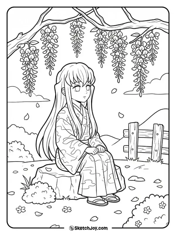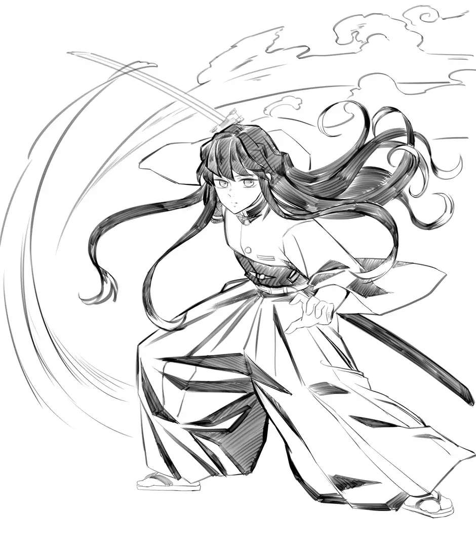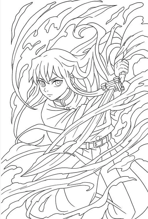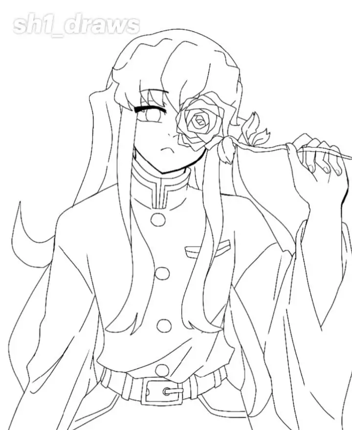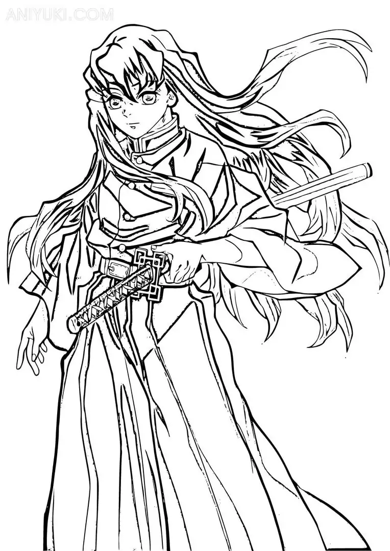 Muichirou Tokito là Hà Trụ của Sát Quỷ Đoàn trong Kimetsu no Yaiba, nổi bật với tài năng kiếm thuật thiên bẩm và Hơi thở Sương mù biến ảo. Khi xuất hiện trong tranh tô màu, cậu thường có vẻ ngoài thanh tú, mái tóc dài ngang hông, phần đuôi xanh mint và đôi mắt xanh bạc thiếu tiêu cự. Bộ đồng phục rộng tay màu tối giúp nhân vật nhìn bí ẩn hơn. Thanh Nhật Luân Kiếm trắng bạc, Ấn Diệt Quỷ và biểu cảm bình thản là những chi tiết bé rất nên chú ý.
