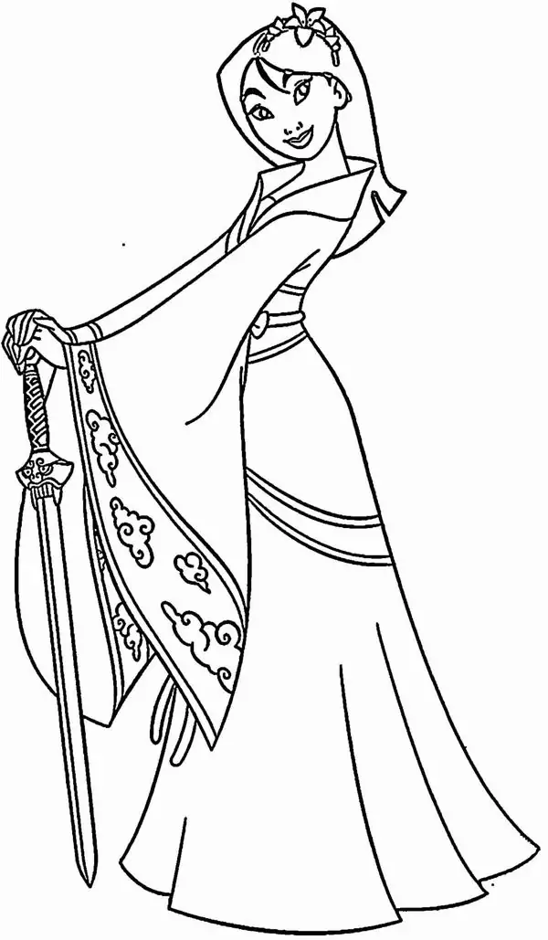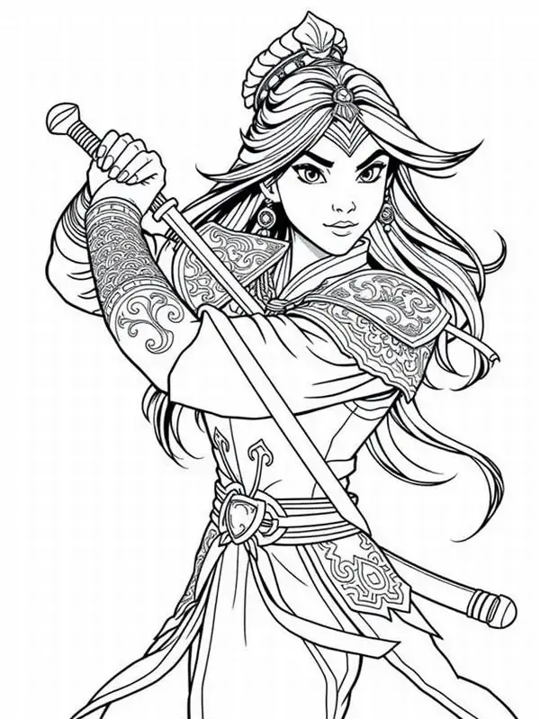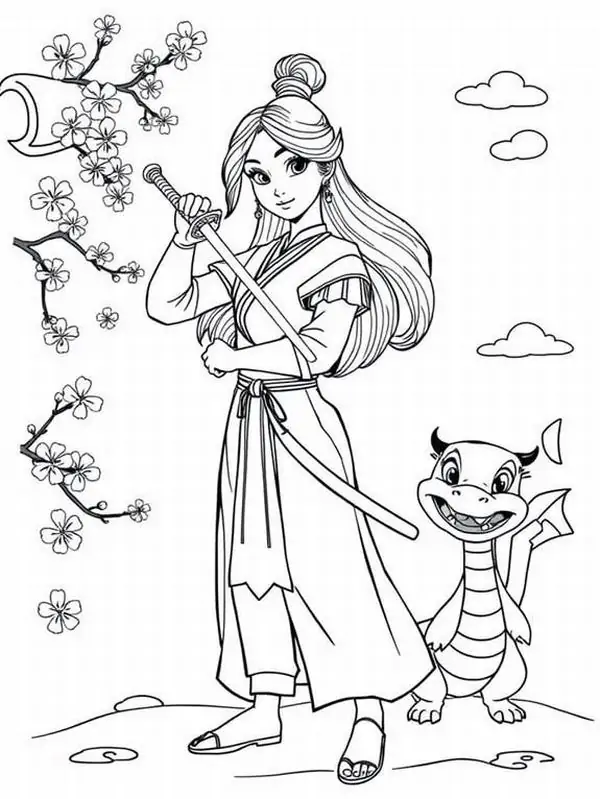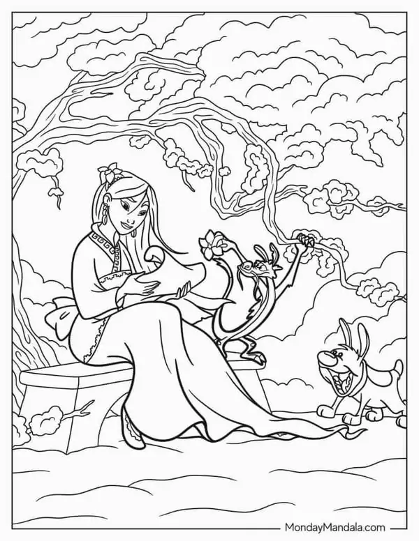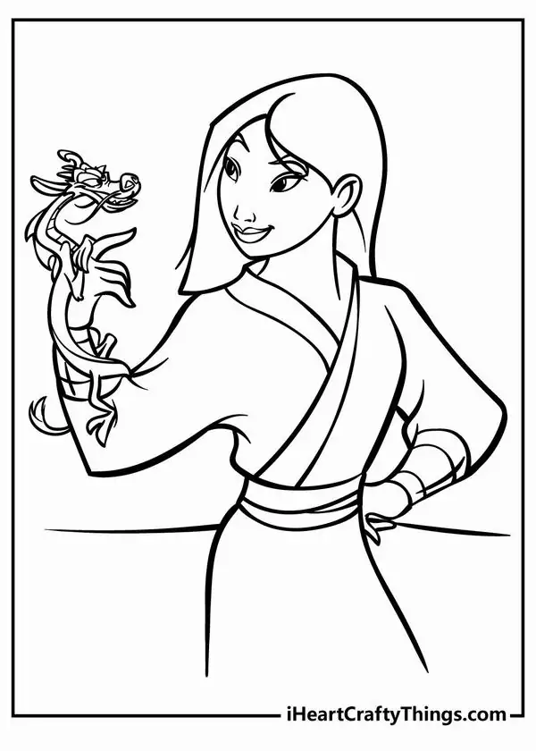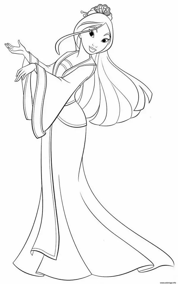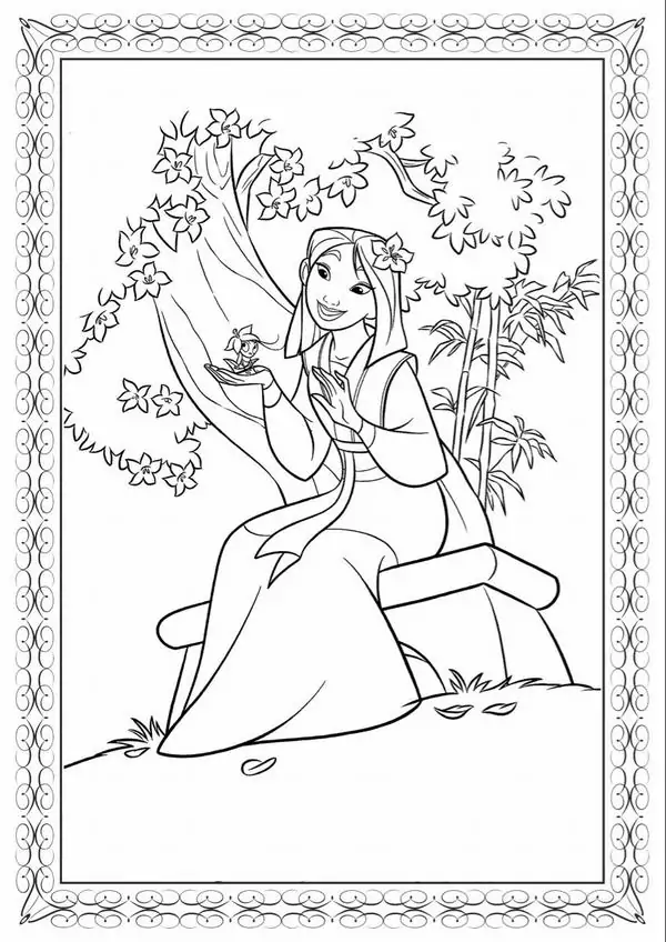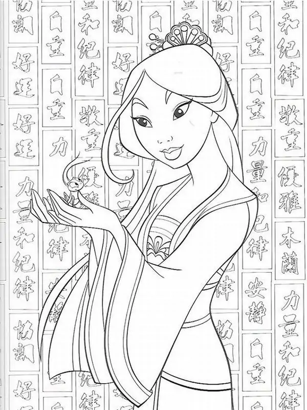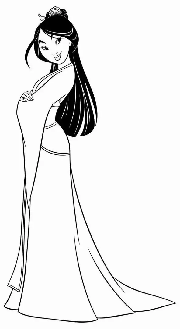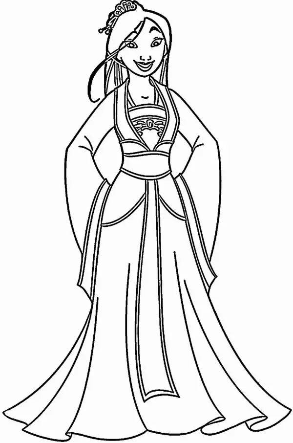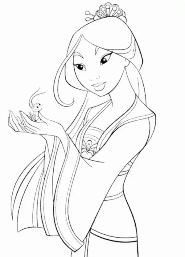 Trong trang tô màu công chúa Mulan, bé sẽ dễ nhận ra đôi mắt đen sắc sảo, mái tóc đen dài rồi chuyển sang tóc ngắn cá tính, cùng những bộ trang phục cổ trang rất cuốn hút. Màu sắc nổi bật thường xoay quanh đỏ, xanh ngọc, hồng phấn, vàng kim, nâu gỗ và xám bạc, tạo nên cảm giác vừa dịu dàng vừa mạnh mẽ, rất hợp với bối cảnh Trung Hoa thời phong kiến.
