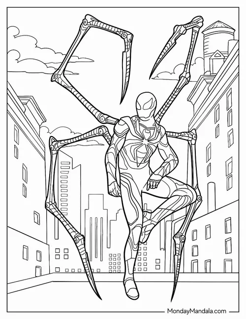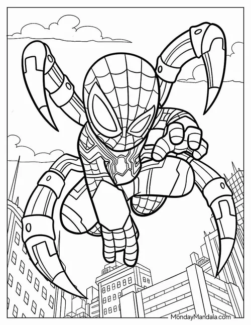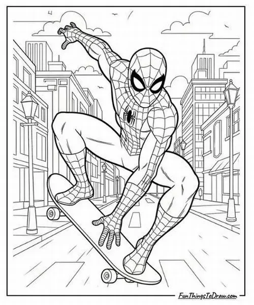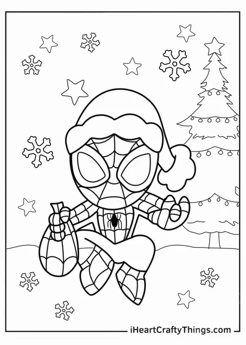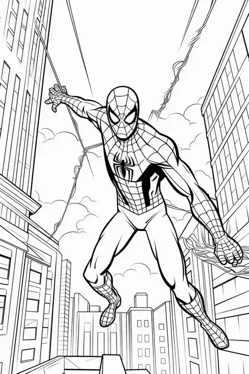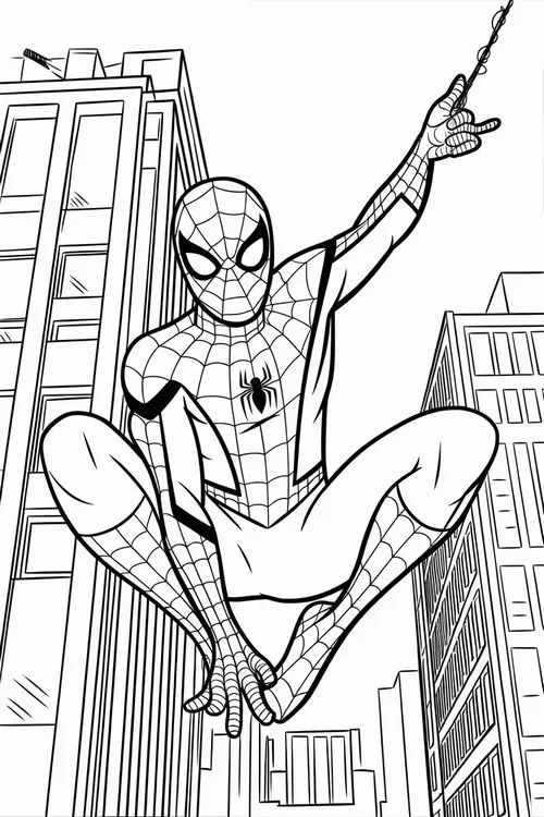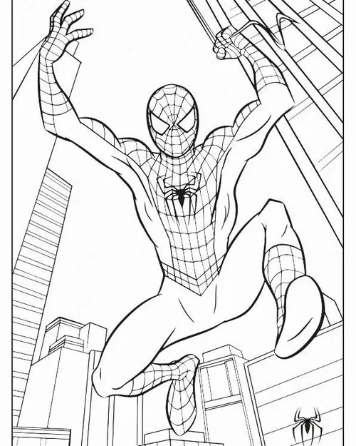 Bộ tranh tô màu người nhện Spiderman thường gồm nhiều tư thế rất cuốn như đu dây giữa các tòa nhà, bám tường, ngồi xổm trên nóc cao ốc, chiến đấu với ác nhân hay xuất hiện cùng Avengers. Nét vẽ rõ, mảng hình mạnh, chi tiết mạng nhện đẹp nên bé tô lên nhìn cực đã mắt nên sẽ hợp bé trai nhiều hơn.