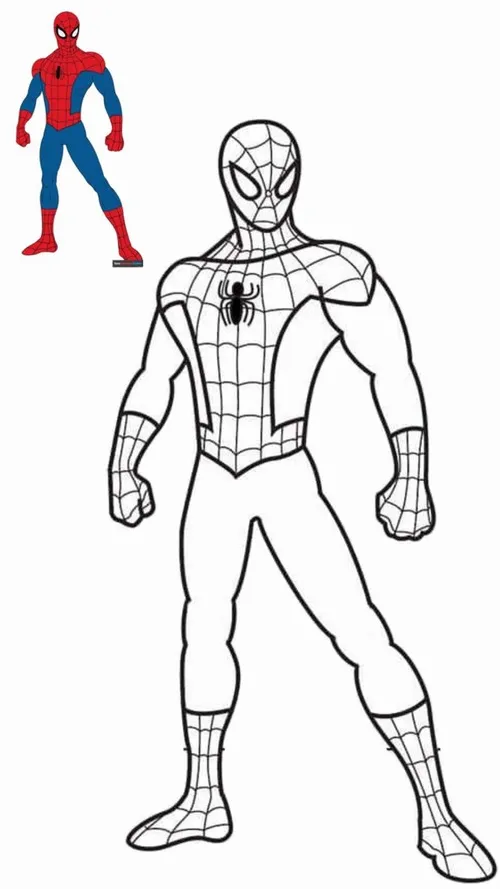 Khi tô tranh người nhện Spiderman, bé nên bắt đầu từ mảng lớn như áo, quần, mặt nạ rồi mới chuyển sang các đường mạng nhện để tranh gọn và dễ kiểm soát hơn. Nếu muốn tô gần giống bản quen thuộc, có thể nhớ công thức đơn giản này: Spiderman thân đỏ, mảng xanh dương đậm, mắt trắng, viền tơ đen, biểu tượng nhện đen giữa ngực. Nhưng không nhất thiết phải giống hoàn toàn đâu, vì chính những màu lạ mới làm bức tranh mang dấu ấn riêng của bé.