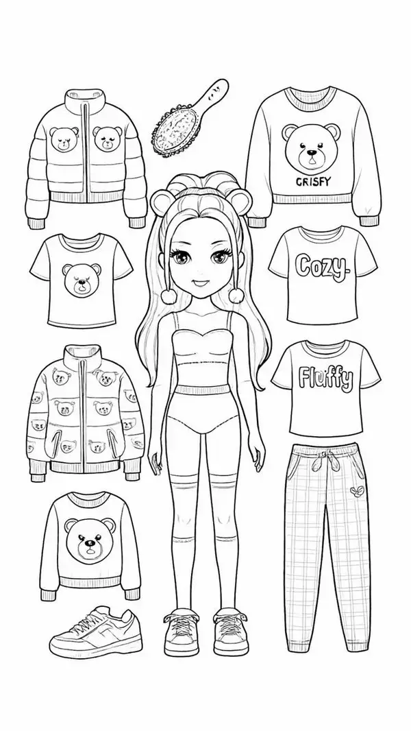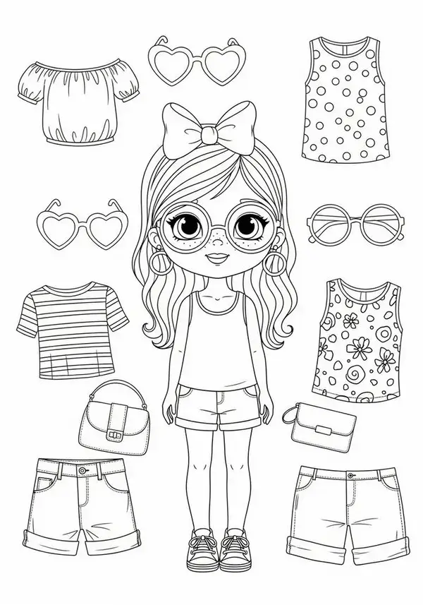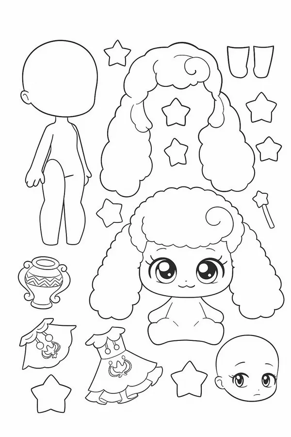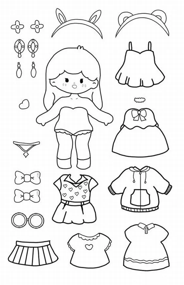 Bộ tranh tô màu búp bê giấy chibi thường gồm nhiều nhân vật nhỏ xinh đi kèm váy áo, giày dép, nơ cài đầu, túi xách phụ kiện và cả phông nền phòng ngủ hoặc nhà búp bê. Nét vẽ đậm, rõ, dễ tô nên rất hợp với bé mầm non và học sinh tiểu học. Chủ đề này thường được các bé gái yêu thích vì có nhiều yếu tố thời trang trẻ em thủ công, cắt dán sáng tạo hay đồ chơi mô hình giấy tự tô sẽ thấy cuốn lắm.
