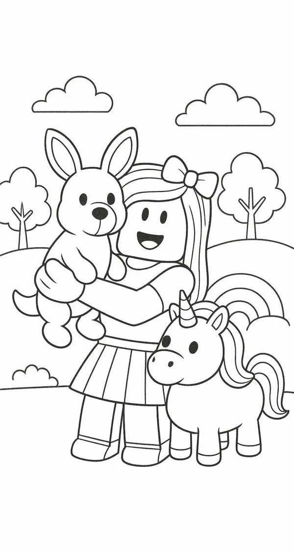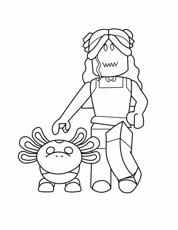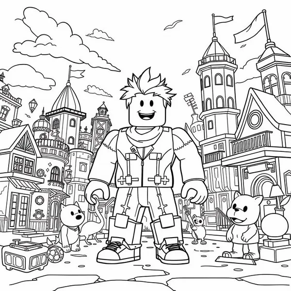 Bộ tranh tô màu Roblox gồm nhiều hình vẽ nhân vật Robloxian, Avatar tùy chỉnh, Noob, Guest, Builderman, thú cưng Adopt Me và các bối cảnh quen thuộc trong thế giới mở. Điểm dễ thích nhất là nét vẽ vuông vức, rõ ràng, bé tô ít bị rối mắt.