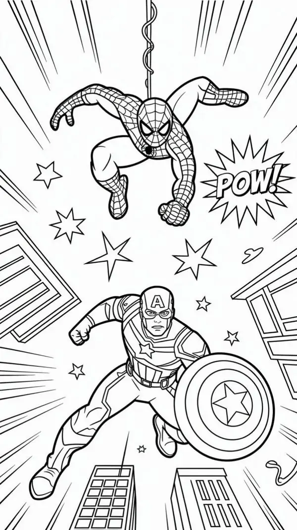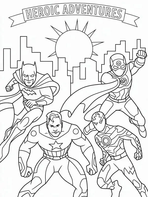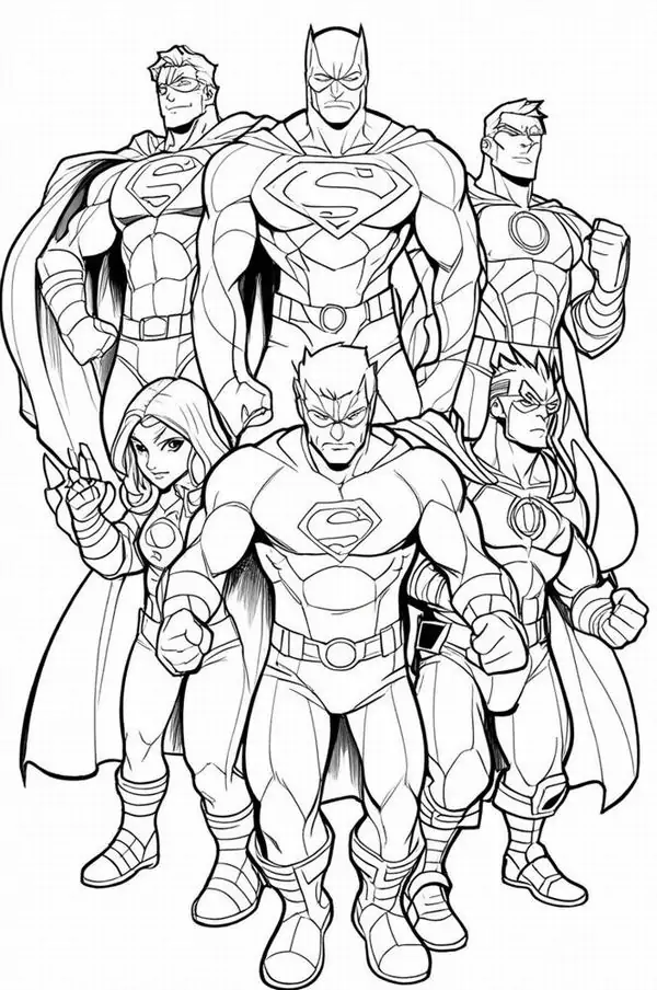 Bộ tranh tô màu siêu nhân mang đến nhiều kiểu tạo hình rất cuốn, từ người hùng mặc áo choàng cổ điển đến chiến binh giáp sắt hiện đại, siêu nhân biến hình hay nhân vật sở hữu năng lượng nguyên tố. Điểm nổi bật là đường nét khỏe, tư thế hành động rõ ràng và nhiều chi tiết để bé thỏa sức sáng tạo.