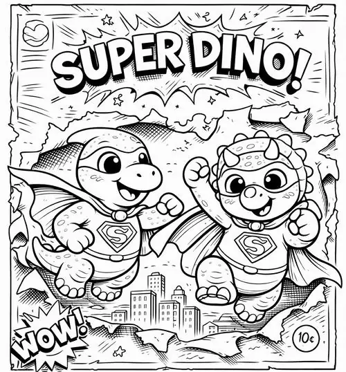 Tranh tô màu khủng long siêu nhân lấy cảm hứng từ những chiến đội nổi tiếng như Mighty Morphin Power Rangers, Zyuranger, Dino Thunder, Kyoryuger và Dino Charge. Điểm nổi bật là sự kết hợp giữa tinh thần chính nghĩa của siêu anh hùng với sức mạnh nguyên thủy của khủng long bạo chúa, ba sừng, rồng lửa hay khủng long bay. Nhìn vào là thấy khí chất mạnh mẽ ngay.