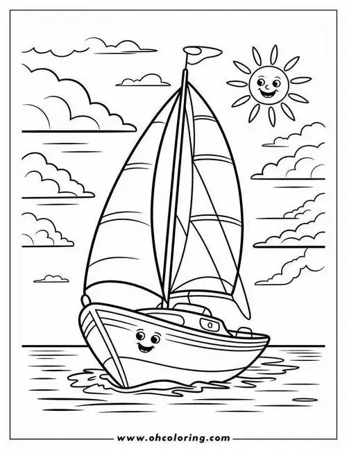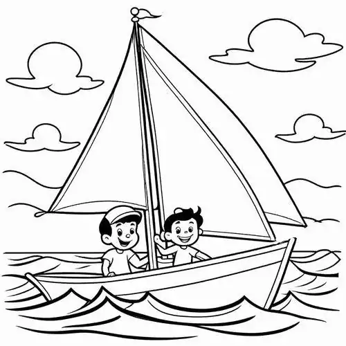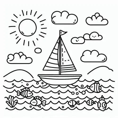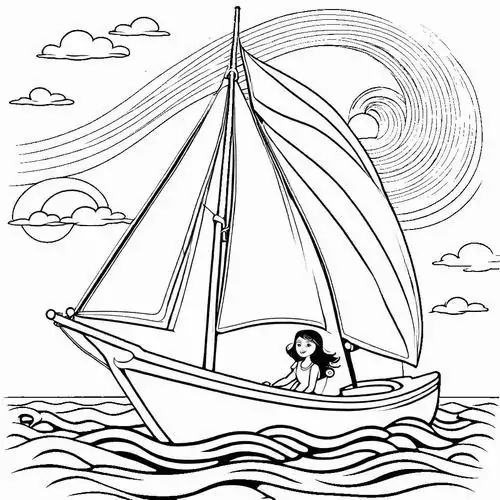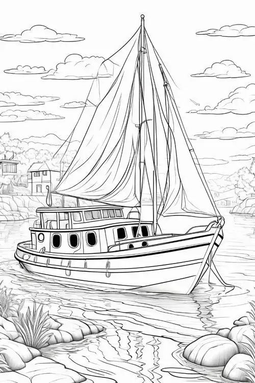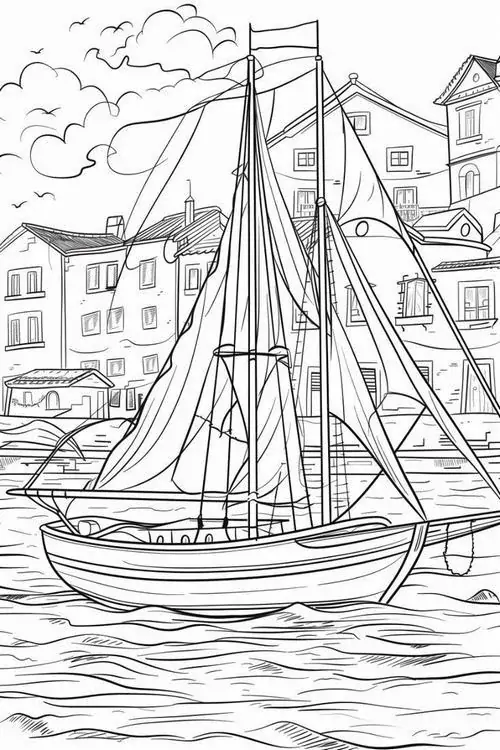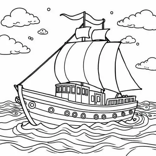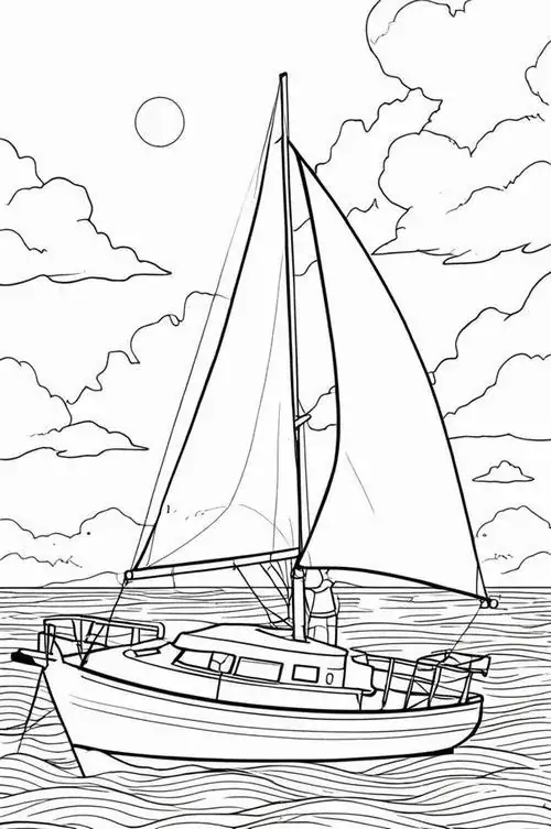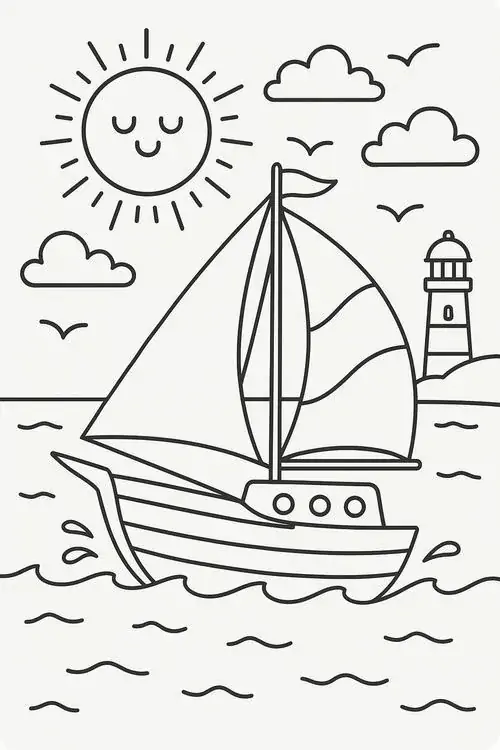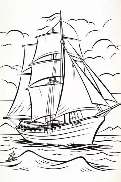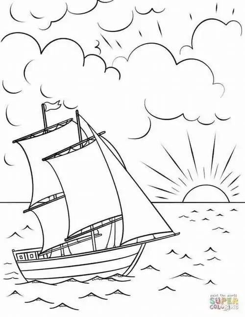 Bộ tranh tô màu thuyền buồm có đủ kiểu từ hình đơn giản với một cột buồm, ít sóng nước đến những mẫu chi tiết hơn với dây chằng, mỏ neo, bánh lái, hải âu và bến cảng. Chủ đề này hợp với các bé thích khám phá, yêu thiên nhiên hay mê những câu chuyện ra khơi với hành trình vượt sóng, vừa có vẻ đẹp thơ mộng của biển trời.