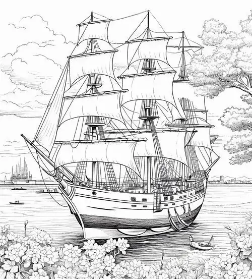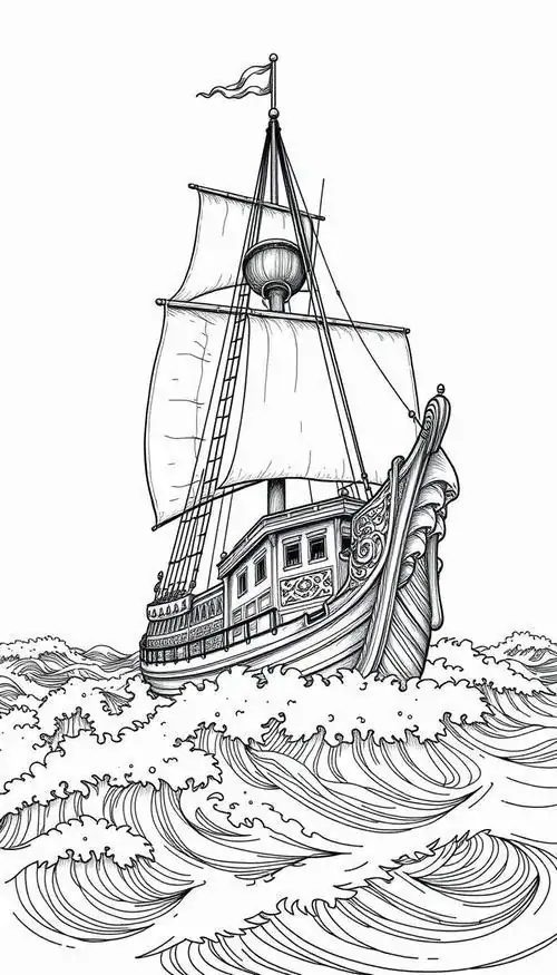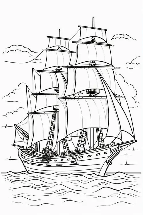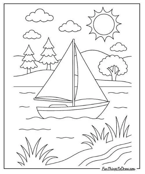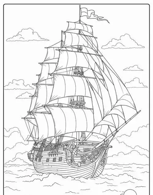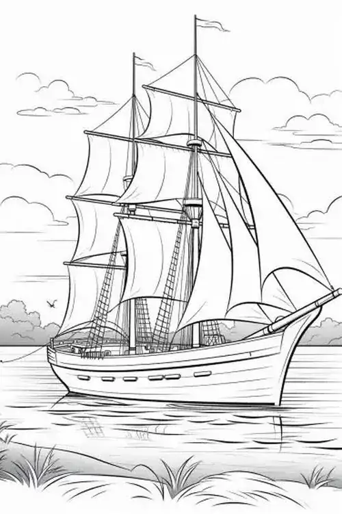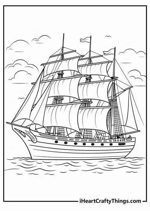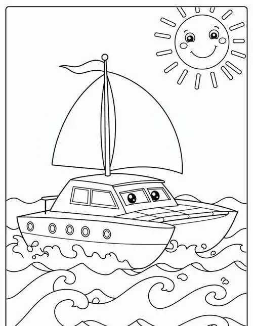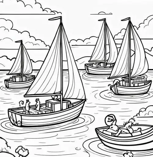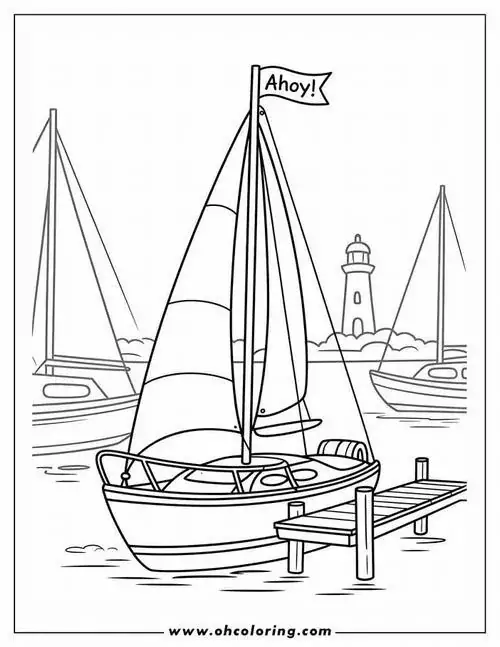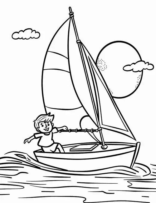 Bộ tranh tô màu thuyền buồm có đủ kiểu từ hình đơn giản với một cột buồm, ít sóng nước đến những mẫu chi tiết hơn với dây chằng, mỏ neo, bánh lái, hải âu và bến cảng. Chủ đề này hợp với các bé thích khám phá, yêu thiên nhiên hay mê những câu chuyện ra khơi với hành trình vượt sóng, vừa có vẻ đẹp thơ mộng của biển trời.