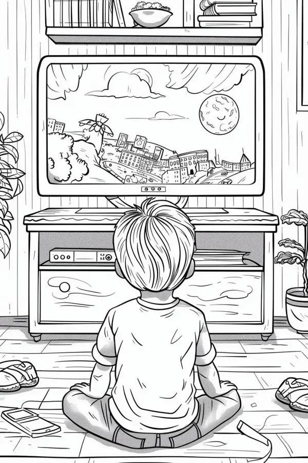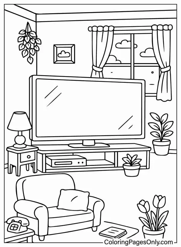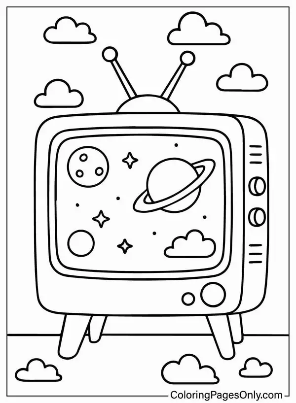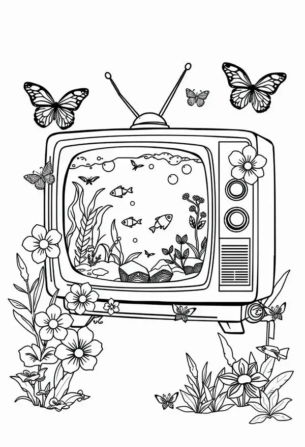 Tranh tô màu tivi là các bản vẽ đen trắng mô phỏng chiếc máy thu hình, hay còn gọi là vô tuyến truyền hình, thiết bị nghe nhìn đã gắn bó lâu năm với nhiều gia đình. Từ những mẫu tivi hộp dày, có ăng ten râu và núm vặn thủ công đến tivi thông minh màn hình phẳng siêu mỏng, chủ đề này cho bé thấy rõ sự thay đổi thú vị của đồ dùng công nghệ qua thời gian.