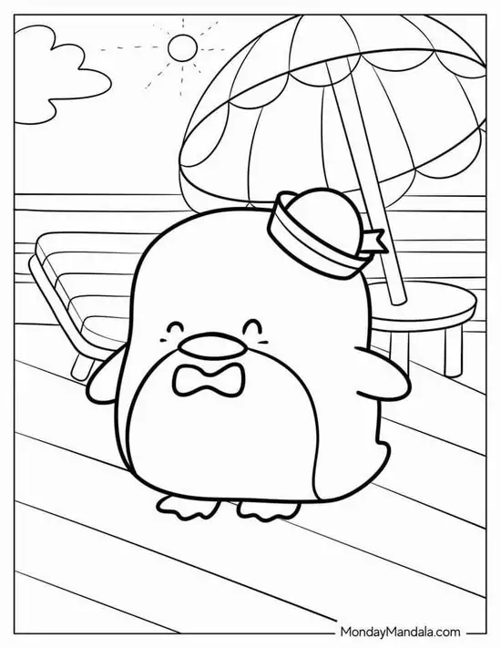 Ngoại hình của Sam cánh cụt xanh rất dễ nhận biết với thân hình tròn ủng, lưng xanh da trời nhạt, bụng trắng, mỏ vàng, mắt đen, mũ thủy thủ trắng và nơ cổ nổi bật. Chủ đề này phù hợp với bé mầm non 3 4 tuổi đến tiểu học 5 6 tuổi vì đường nét phác thảo rõ, dễ tô, dễ phối màu và rất thân thiện với trí tưởng tượng.