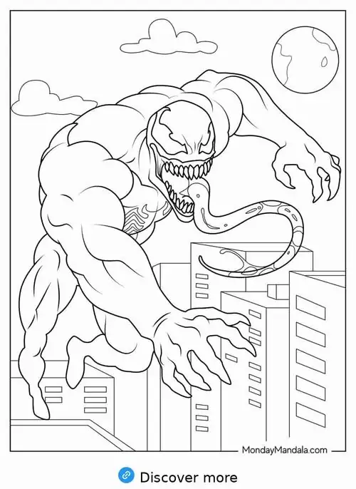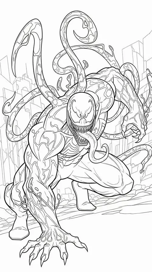 Nhìn Venom đôi khi giống như một cơn mực đen đang sống, vừa chảy tràn vừa cuộn lại thành hình quái vật khổng lồ. Chính cảm giác ấy làm tranh tô màu Venom trở nên cuốn lạ lắm, bé nào thích mạnh mẽ là dễ mê ngay. Arte y Cultura TV sưu tầm bộ tranh này để mỗi trang giấy không chỉ là nét vẽ đen trắng, mà còn là một cuộc phiêu lưu giữa bóng tối và trí tưởng tượng.