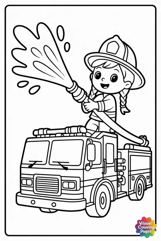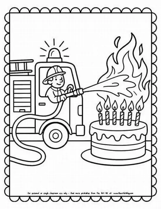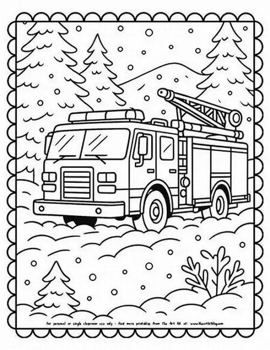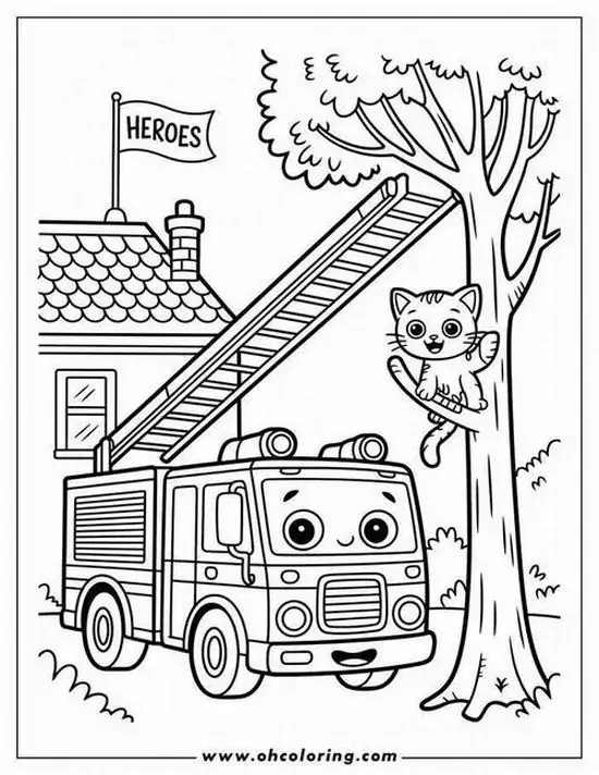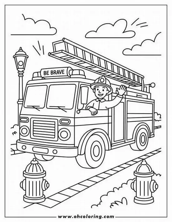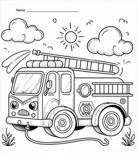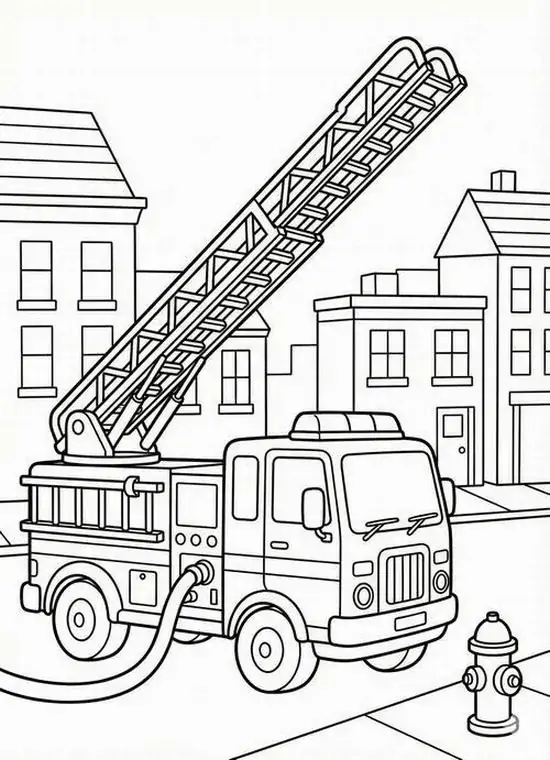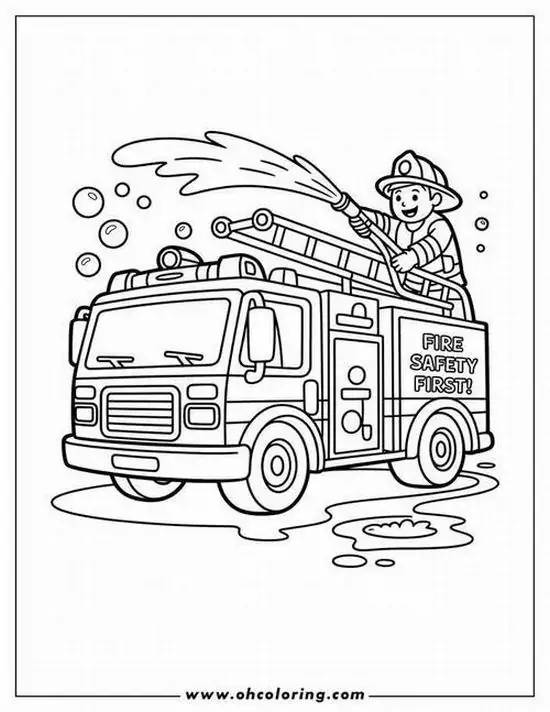 Điểm thu hút nhất là ngoại hình to lớn, thân xe dài, nhiều khoang chứa thiết bị, thang nâng thủy lực cao, vòi rồng áp lực mạnh và đèn tín hiệu nổi bật. Màu sắc quen thuộc nhất là đỏ rực, đỏ trắng hoặc vàng chanh để dễ nhận ra từ xa. Khi vào tranh tô màu, hình ảnh xe cứu hỏa còn trở nên gần gũi hơn nhờ các chi tiết như lính cứu hỏa, trạm cứu hỏa, bình chữa cháy, mũ bảo hiểm hay đám cháy đang được khống chế.