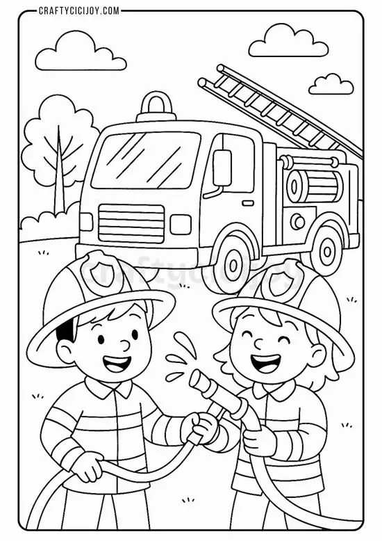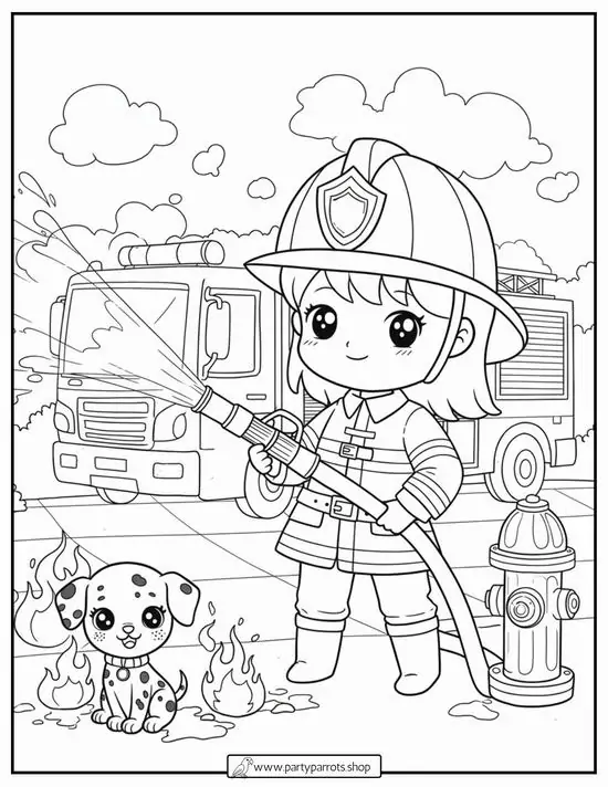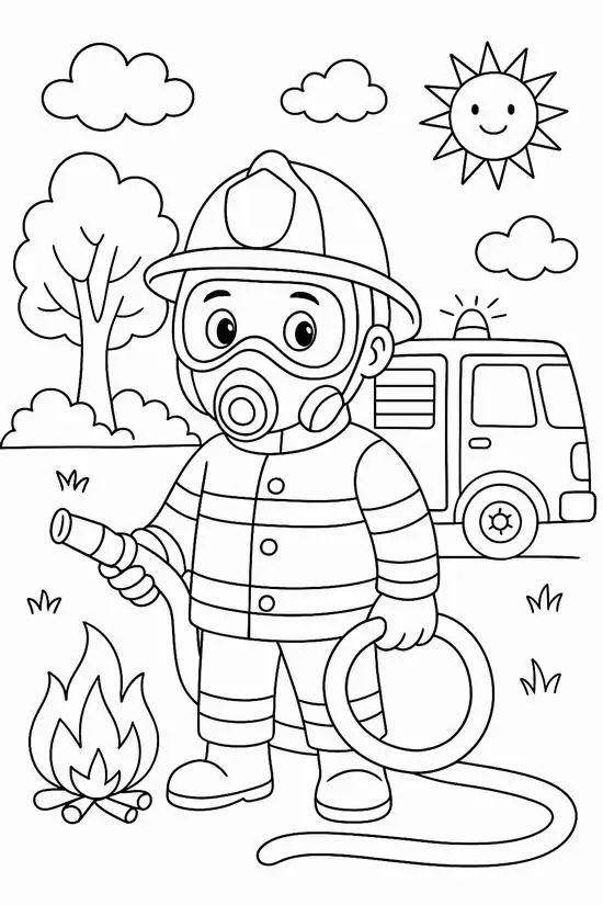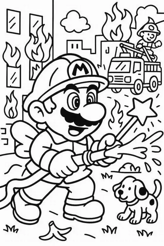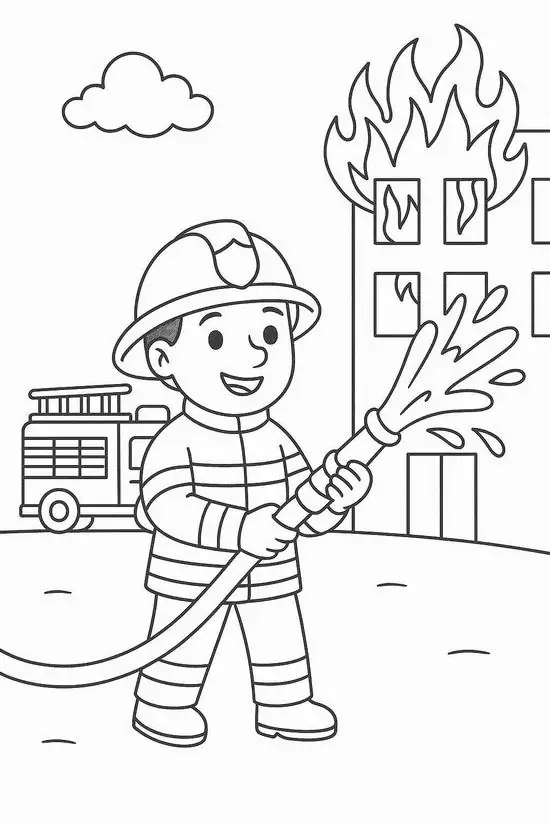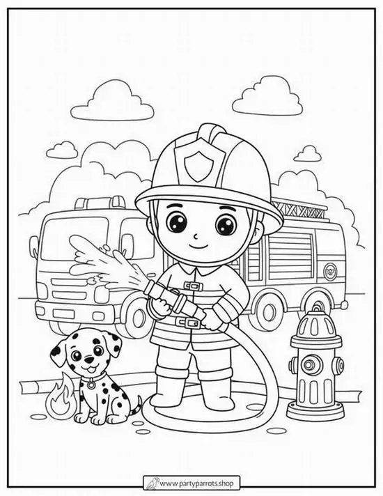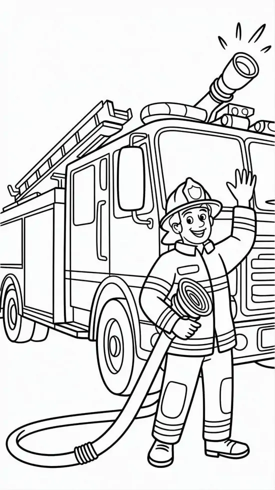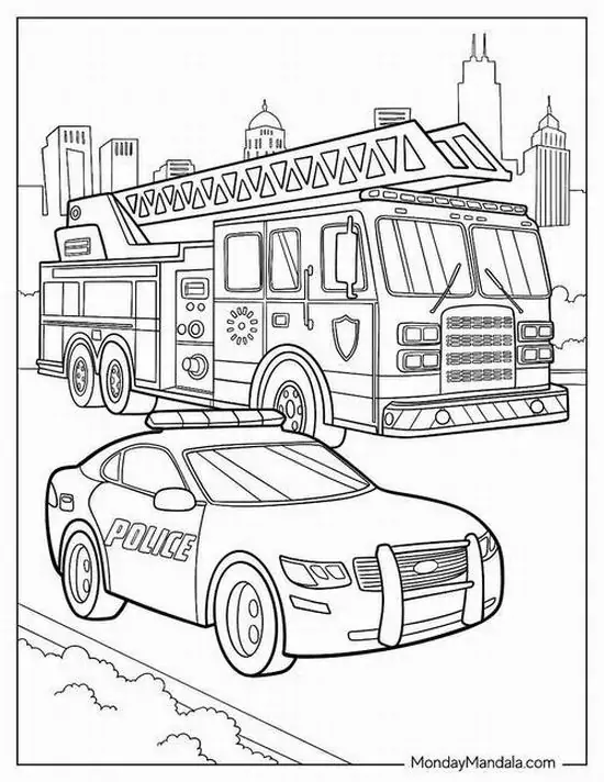 Điểm thu hút nhất là ngoại hình to lớn, thân xe dài, nhiều khoang chứa thiết bị, thang nâng thủy lực cao, vòi rồng áp lực mạnh và đèn tín hiệu nổi bật. Màu sắc quen thuộc nhất là đỏ rực, đỏ trắng hoặc vàng chanh để dễ nhận ra từ xa. Khi vào tranh tô màu, hình ảnh xe cứu hỏa còn trở nên gần gũi hơn nhờ các chi tiết như lính cứu hỏa, trạm cứu hỏa, bình chữa cháy, mũ bảo hiểm hay đám cháy đang được khống chế.