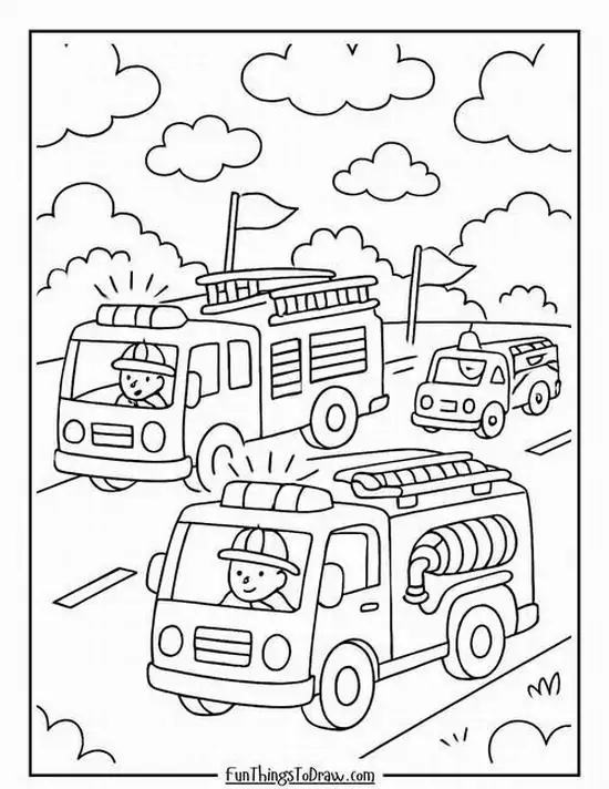 Tổng hợp loạt tranh tập tô màu xe cứu hỏa chữa cháy cho bé